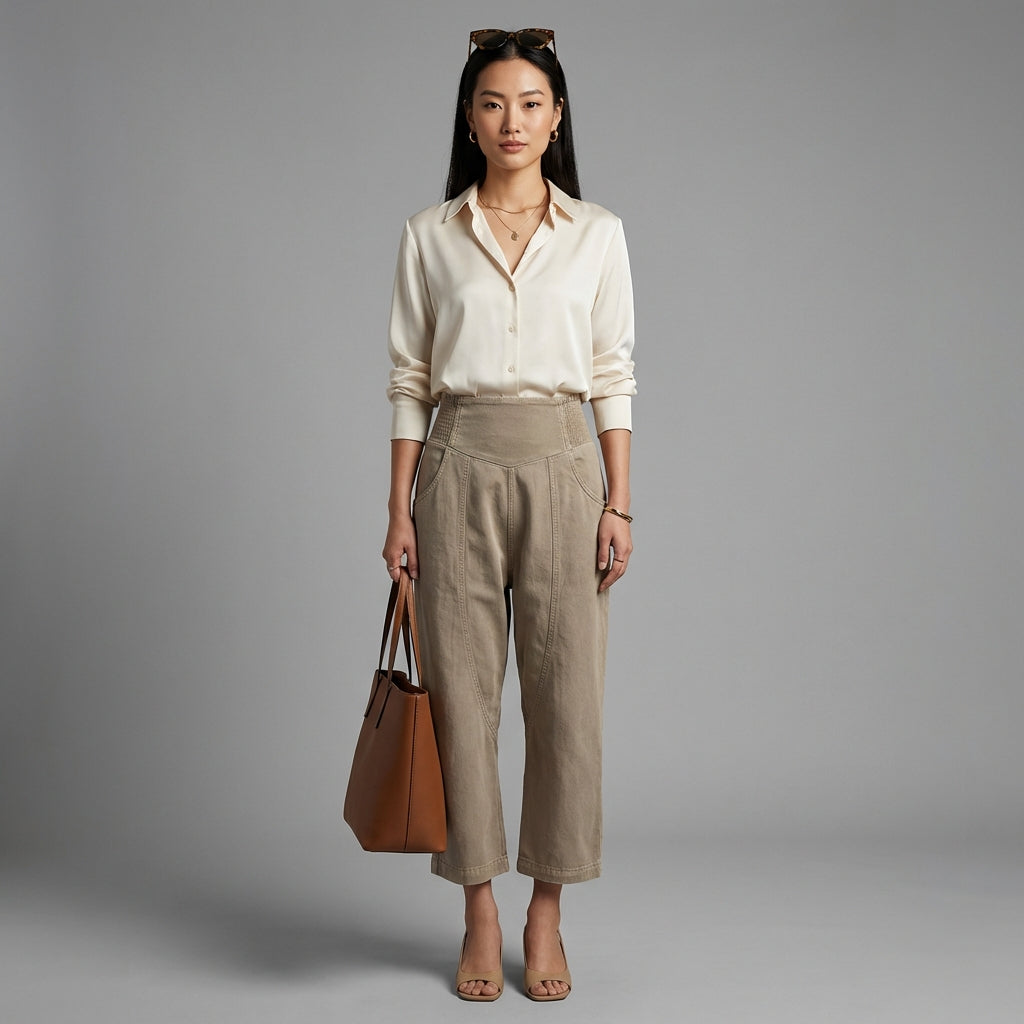- Typ: Gerade Hose, Cropped. Ein schmeichelhafter Schnitt, der die Silhouette verlängert und Schuhe hervorhebt, ideal für einen zeitgenössischen Look.