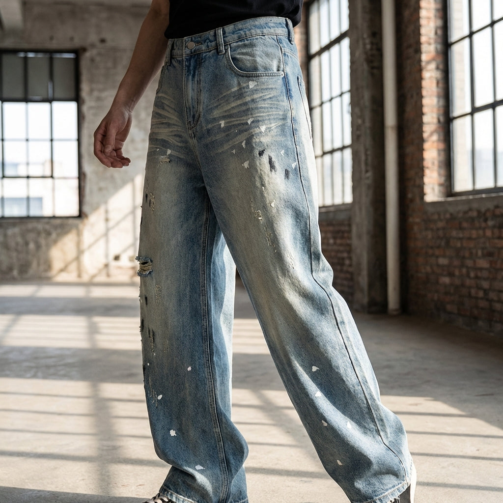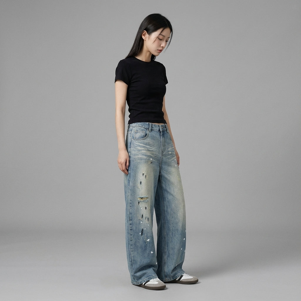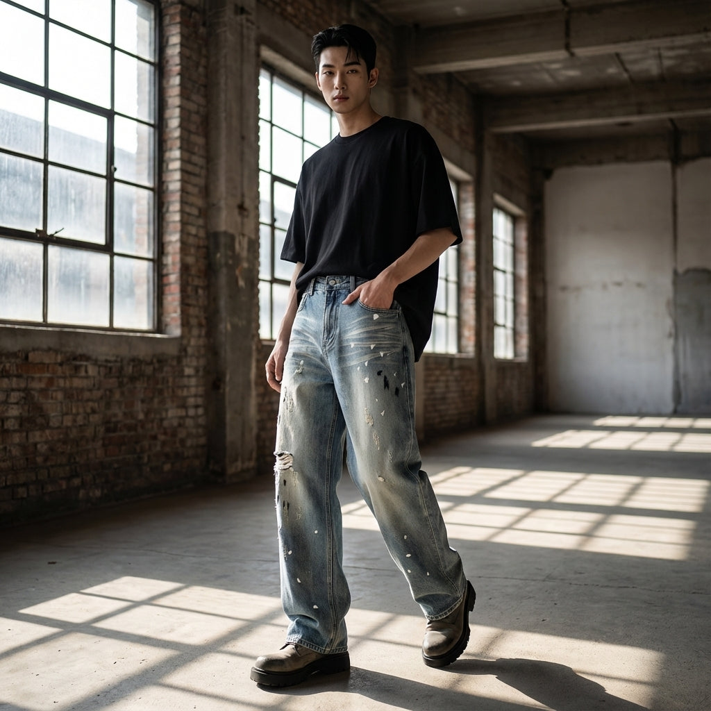 - Stil: Streetwear, Retro, K-Fashion. Diese Jeans verkörpert den lässigen und kühnen Geist der koreanischen Urban Fashion, mit einem Vintage-Touch.