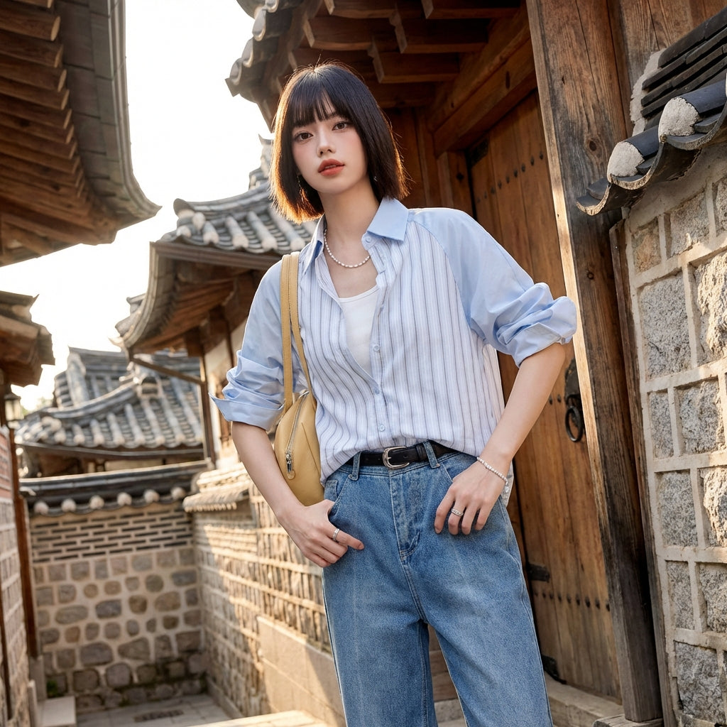 - Stil: Koreanische Mode, Streetwear, Vintage. Dieser Blazer verkörpert die lässige Eleganz der K-Fashion, mit einem Retro- und urbanen Touch.