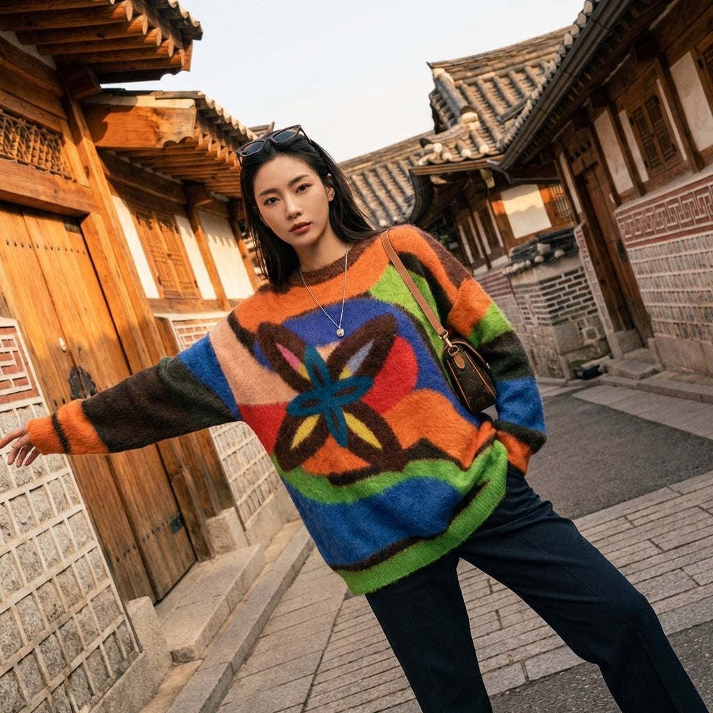 - Stil: Streetwear, Casual, K-Fashion. Dieser Pullover verkörpert die urbane und moderne Ästhetik der koreanischen Mode, perfekt für einen lässigen, aber stilvollen Look.