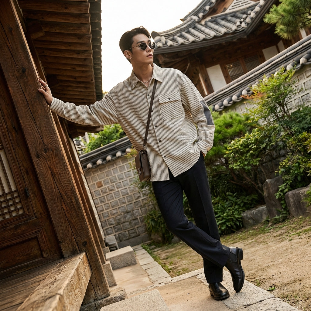 - Stil: Streetwear, Minimalistisch, K-Fashion. Dieses Hemd verkörpert die lässige Eleganz der koreanischen Mode, ideal für einen urbanen und modernen Look.