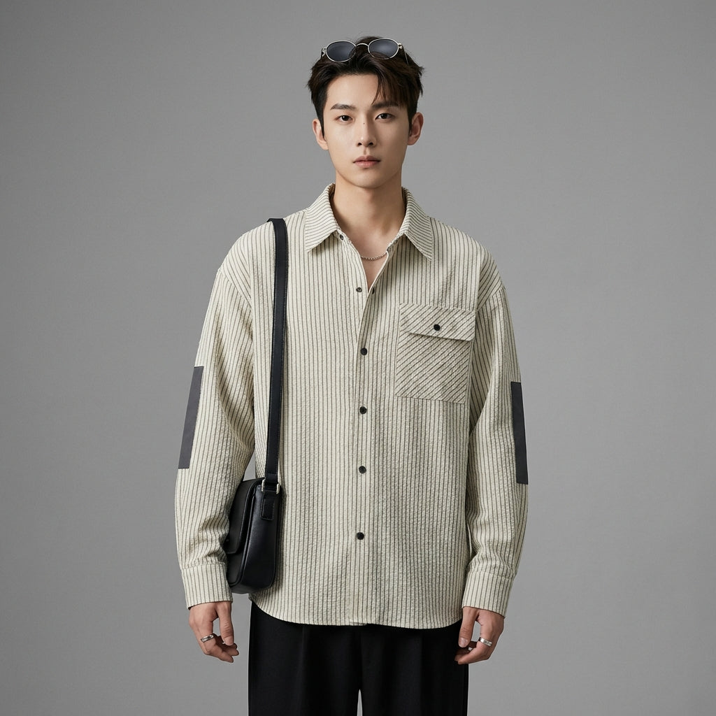 Kreieren Sie einen lässigen und trendigen Look mit unserem gestreiften Langarmhemd, perfekt für alle Gelegenheiten. Sein minimalistisches Design und der weite Schnitt sorgen den ganzen Tag für Komfort und Stil! ✨