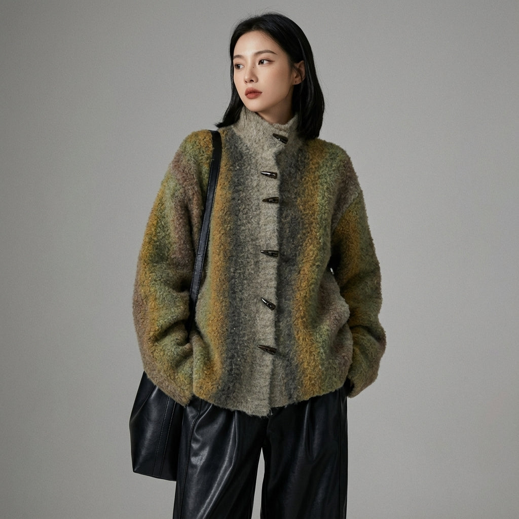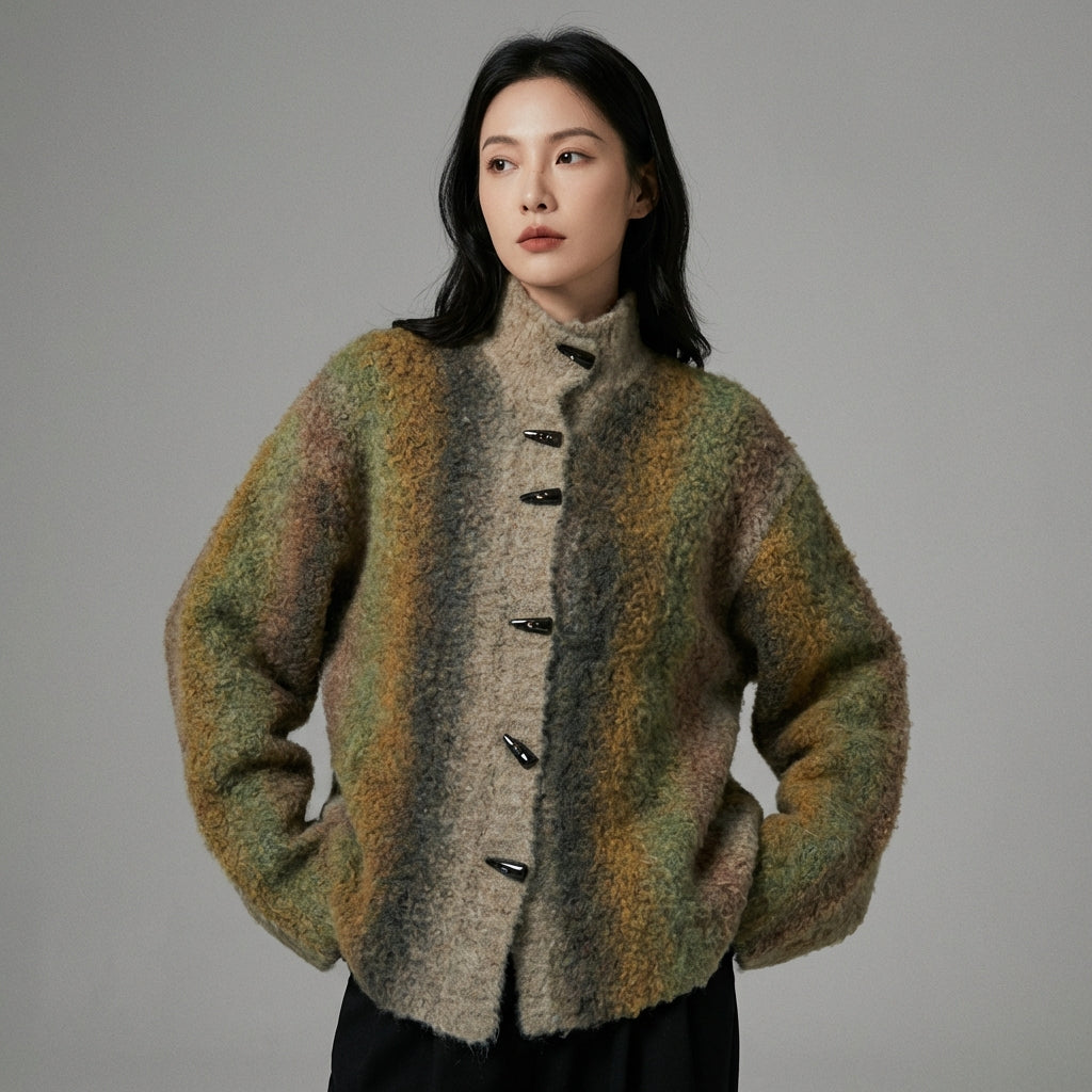 - Typ: Cardigan, Stehkragen, geknöpft. Ein vielseitiges und leicht zu tragendes Stück, das sich vielen Gelegenheiten anpasst.