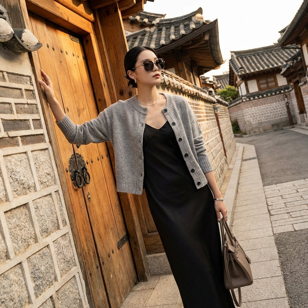 - Stil: Minimalistisch, K-Fashion, Streetwear. Dieser Pullover verkörpert die diskrete und moderne Eleganz der koreanischen Mode, perfekt für einen lässigen und trendigen Stil.