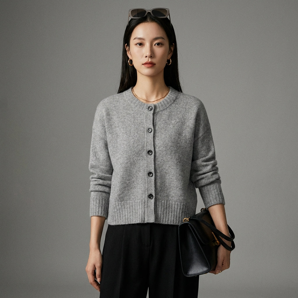 Dieser graue Strickpullover ist eine perfekte Wahl für alle, die ein Gleichgewicht zwischen Komfort, Stil und Vielseitigkeit suchen. Fügen Sie ihn Ihrer Kollektion hinzu für einen Hauch von müheloser Eleganz.