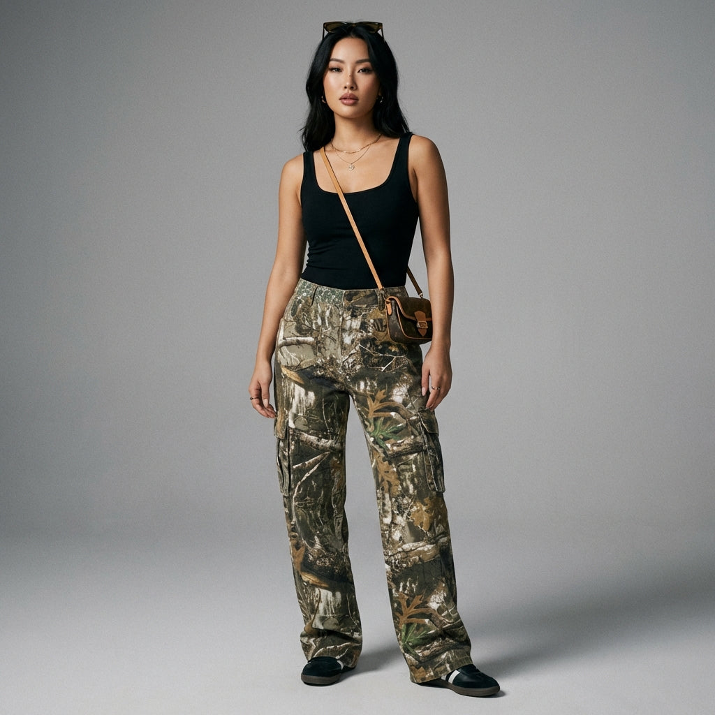 - Typ: Cargo, High Waist, Weites Bein. Ein moderner und funktionaler Schnitt, der eine lässige und trendige Silhouette bietet.