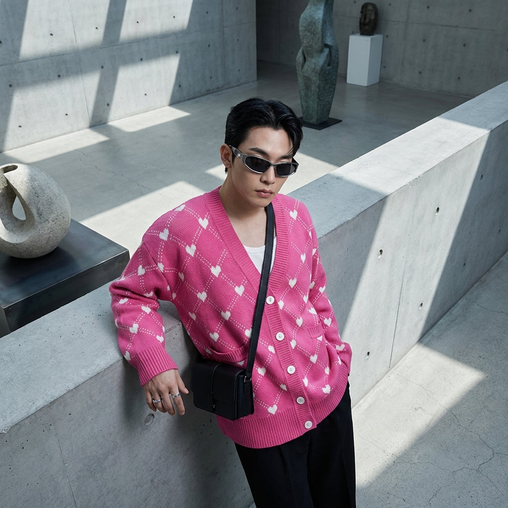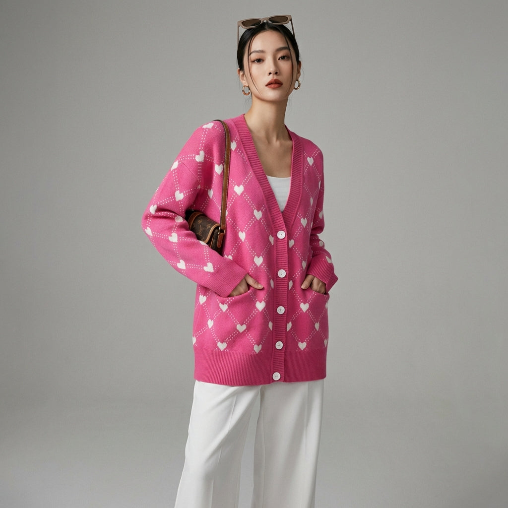 Kreieren Sie einen sanften und trendigen Look mit unserem Jacquard-Cardigan, verziert mit dem 'Love'-Motiv. Dieser kuschelige Pullover ist perfekt, um Ihren Herbst- und Winteroutfits einen Hauch von Romantik zu verleihen, während er Sie gleichzeitig mit Wärme und Stil umhüllt! ❤️