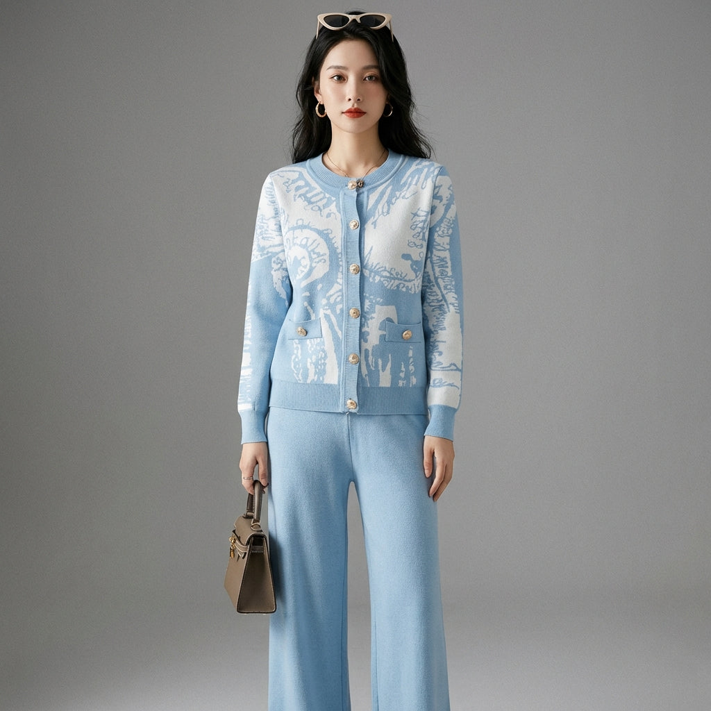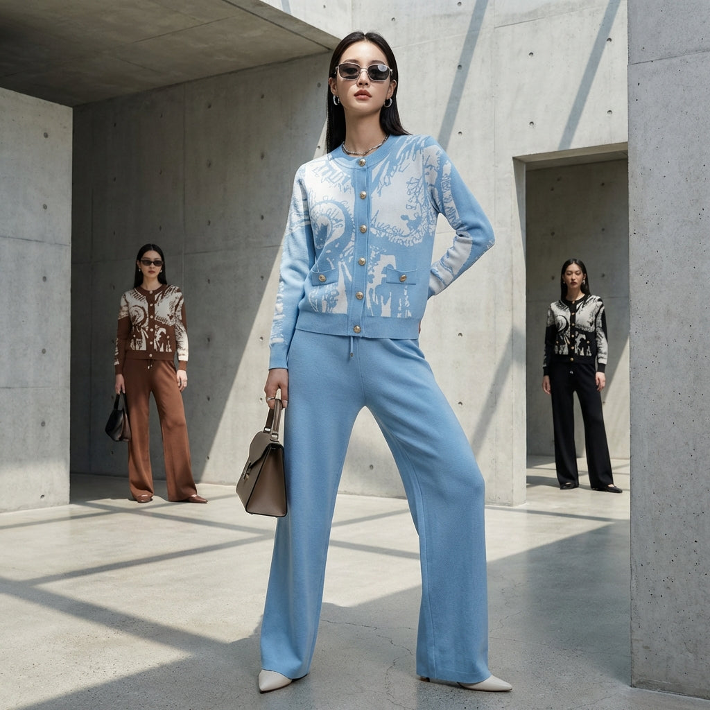 Dieses Jacquard-Set ist ein unverzichtbares Stück für alle, die die perfekte Balance zwischen Eleganz, Komfort und den neuesten Trends der koreanischen Mode suchen.