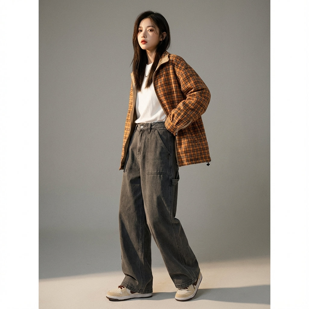 Mit dieser Jeans entscheiden Sie sich für ein vielseitiges Kleidungsstück, das Komfort, Haltbarkeit und einen modernen koreanischen Stil vereint, der sich leicht in jede Garderobe integrieren lässt.
