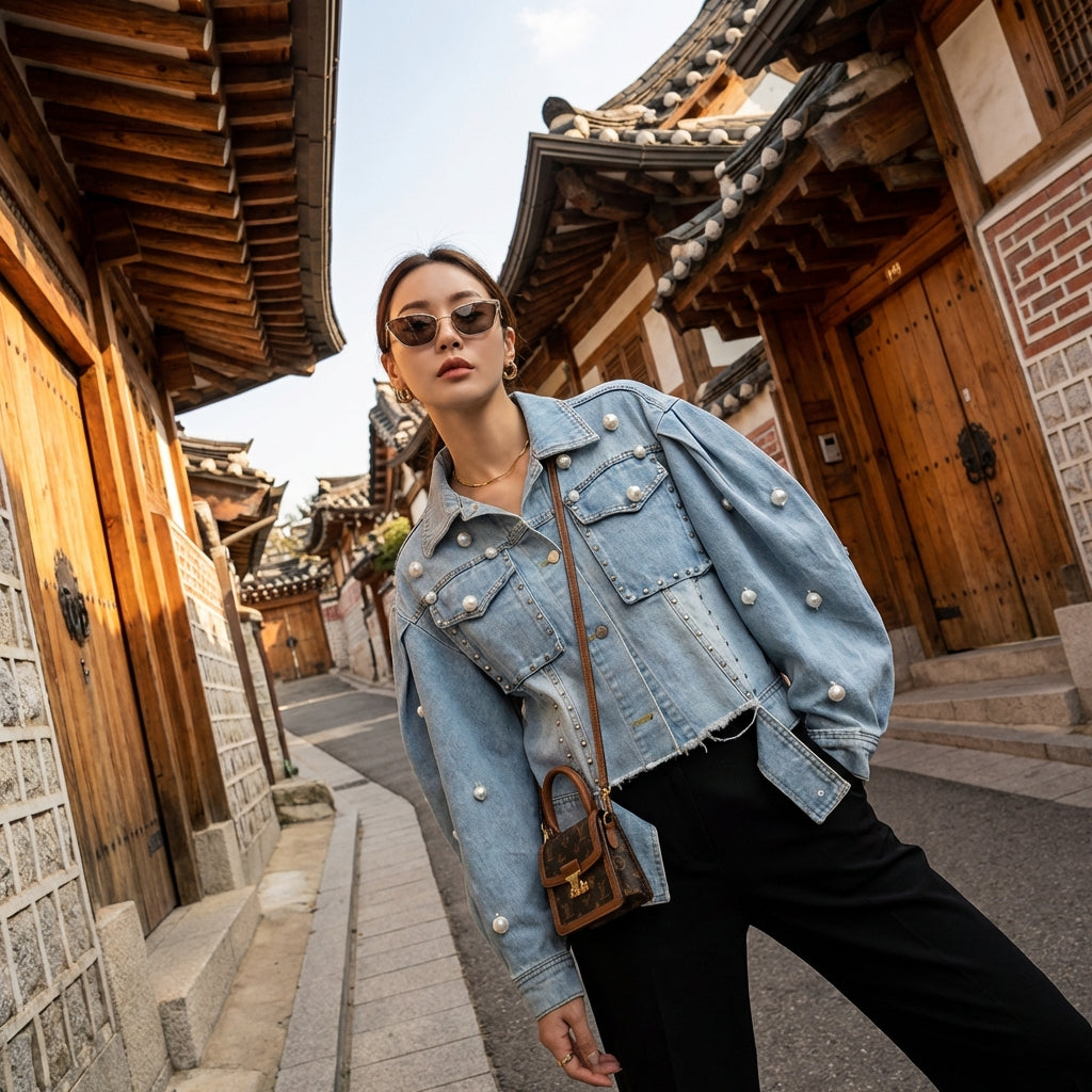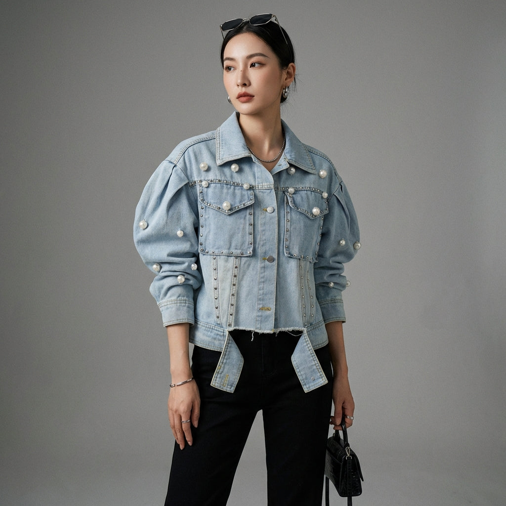 Kreieren Sie einen trendigen und gewagten Look mit unserer Jeansjacke, verziert mit Perlen. Dieses einzigartige Streetwear-Stück kombiniert den Komfort von Denim mit raffinierten Details für einen selbstbewussten Stil! ✨