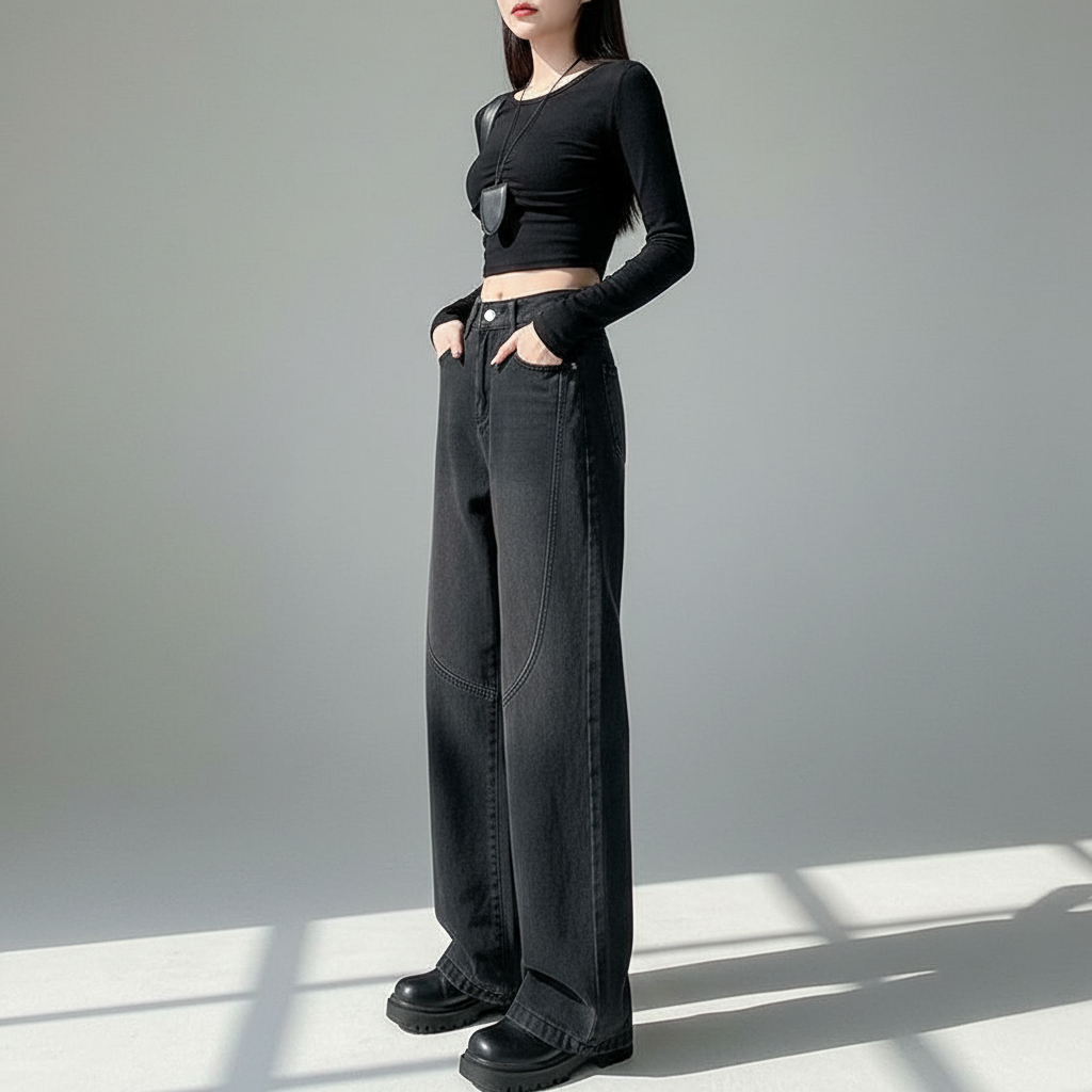 Mit der Wahl dieser koreanischen Jeans fügen Sie Ihrer Garderobe ein mutiges und bequemes Stück hinzu, das perfekt für einen stilvollen Alltag ist, inspiriert von den neuesten Modetrends Seouls.
