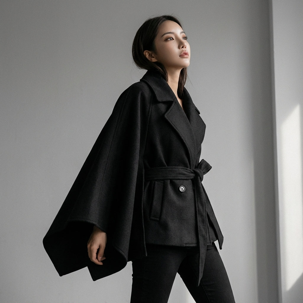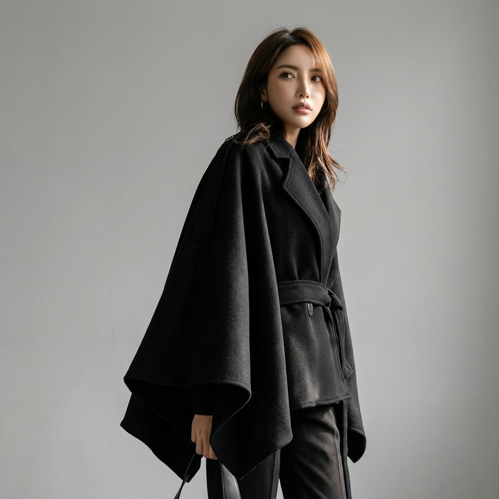 - Stil: Koreanische Mode, Elegant, Urban Chic, Commuter. Inspiriert von den neuesten koreanischen Trends, verleiht dieser Poncho Cape Ihrer Garderobe einen Hauch von Raffinesse und Modernität.