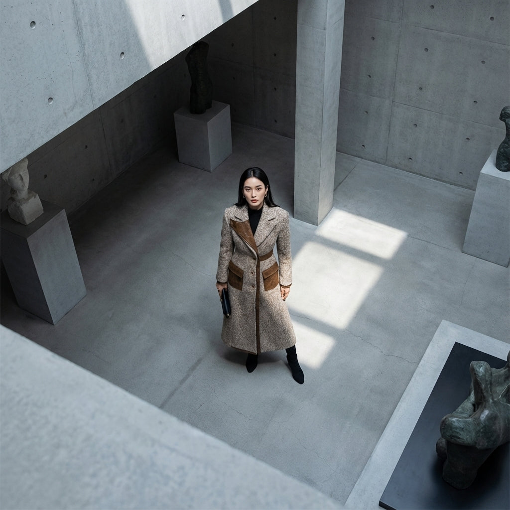 - Typ: Verlängerter Schnitt, einfache Knopfleiste. Seine klare Silhouette und großzügige Länge verleihen ein distinguiertes und modernes Aussehen, passend für verschiedene Anlässe.