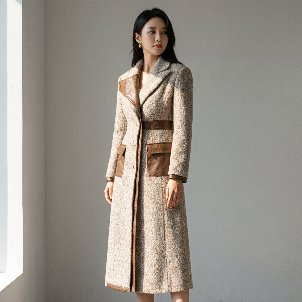 Entdecken Sie die zeitlose Eleganz unseres langen koreanischen Trenchcoats für Damen. Sein verlängerter Schnitt und die einfache Knopfleiste schaffen eine raffinierte Silhouette, während der klassische Reverskragen einen Hauch von Raffinesse verleiht. Ideal für einen schicken und trendigen Look ist dieser hellkaffeefarbene Mantel ein Must-have der koreanischen Mode! ✨