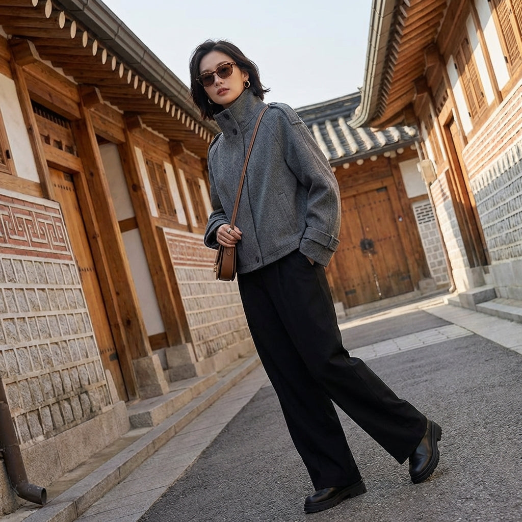 - Stil: Streetwear, Minimalistisch, K-Fashion. Diese Jacke verkörpert die lässige Eleganz der koreanischen Mode, ideal für einen urbanen und modernen Stil.