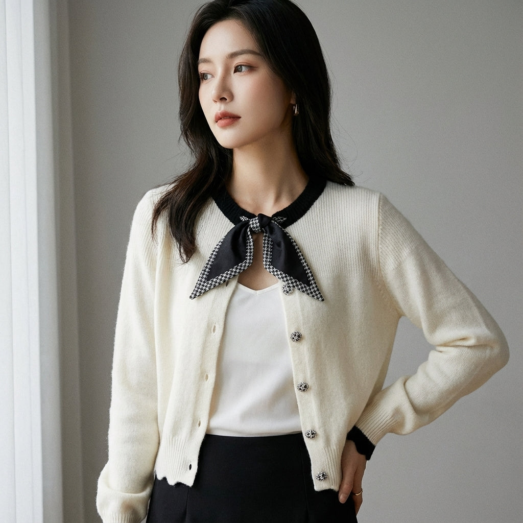 - Stil: Koreanische Mode, Elegant, Preppy. Dieser Cardigan verkörpert die diskrete Eleganz und den Charme der koreanischen Mode, perfekt für einen gleichzeitig raffinierten und lässigen Stil.