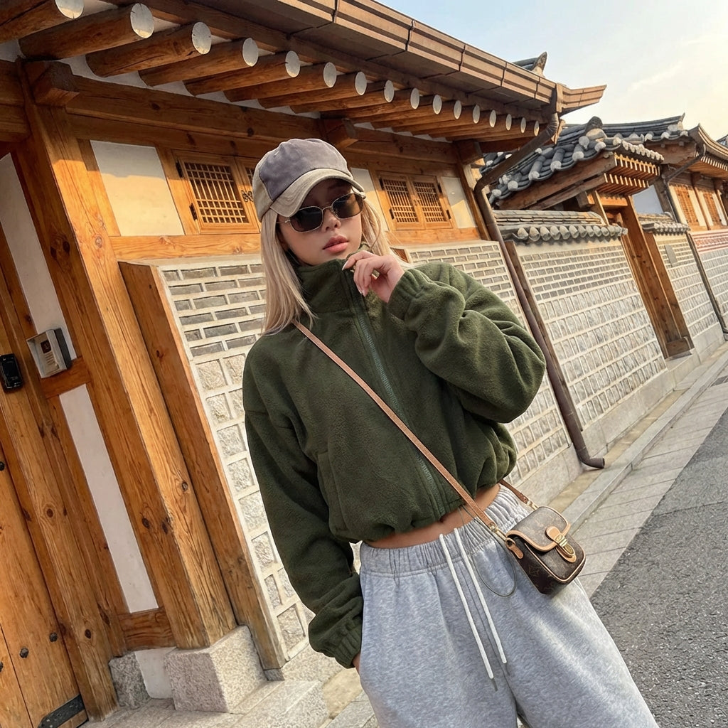 - Stil: Streetwear, K-Fashion, Trend. Diese Jacke verkörpert den urbanen und modernen Geist der koreanischen Mode mit einem lässigen Touch.