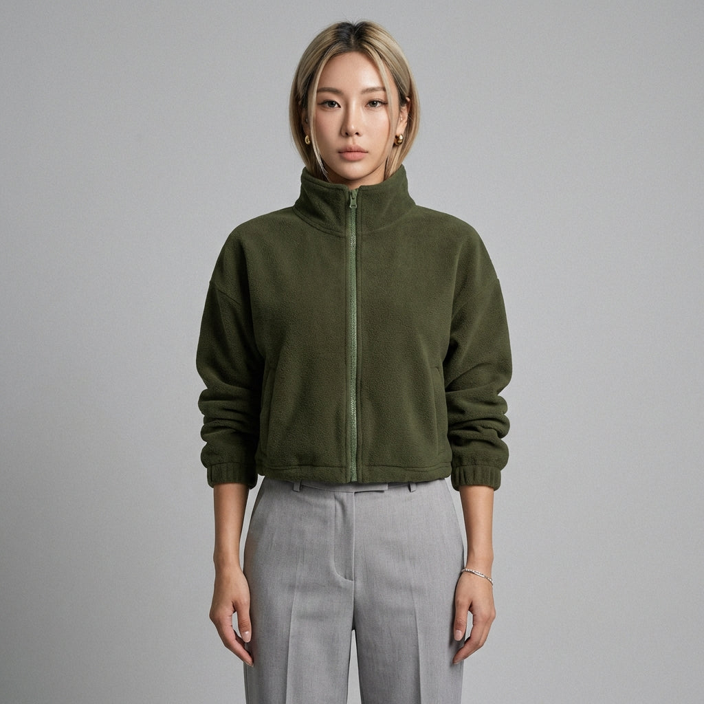 - Typ: Cropped, Stehkragen. Ein kurzer Schnitt, der die Silhouette betont, und ein Stehkragen für eleganten Schutz.