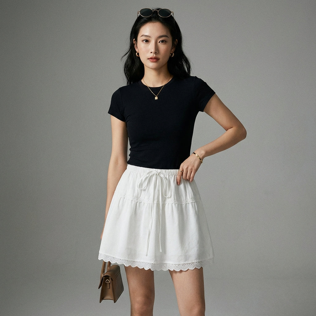 - Stil: Koreanische Mode, Trend, Casual. Dieser Rock spiegelt die junge und dynamische Ästhetik der K-Fashion wider, perfekt für einen lässigen und stylischen Look.