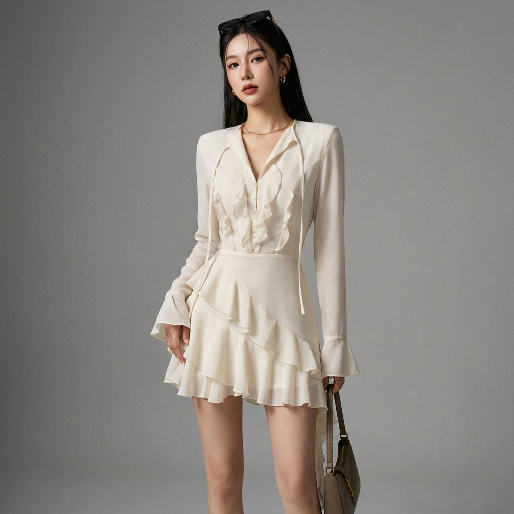 Betonen Sie Ihren Stil mit unserem kurzen Rüschenrock, der Ihre Figur perfekt zur Geltung bringt. Sein tailliertes Design betont Ihre Taille, während die Rüschendetails einen Hauch von Weiblichkeit und Modernität verleihen. Perfekt für einen trendigen und eleganten Look! ✨