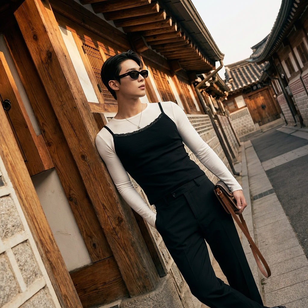 - Stil: Koreanische Mode, Streetwear, Trend, K-Fashion. Dieses Top fängt die Essenz der koreanischen Mode mit einem urbanen und modernen Touch ein.