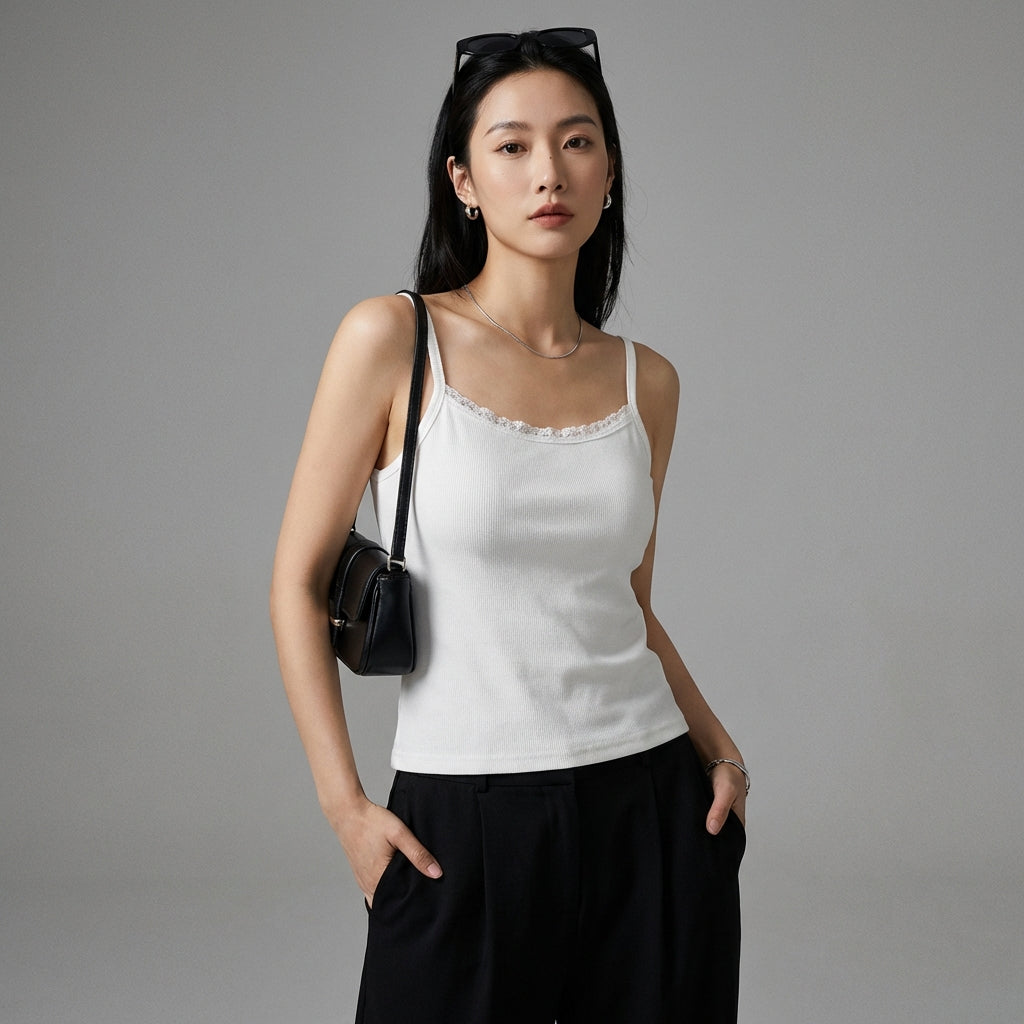 Kreieren Sie einen trendigen und gewagten Look mit unserem kurzen Top aus Spitze und Strick. Dieses ärmellose Tanktop mit Rundhalsausschnitt und zarten Spitzendetails ist perfekt, um einen einzigartigen "sweet and spicy"-Stil zu zeigen. Ideal für sonnige Tage oder zum eleganten Überziehen! ✨