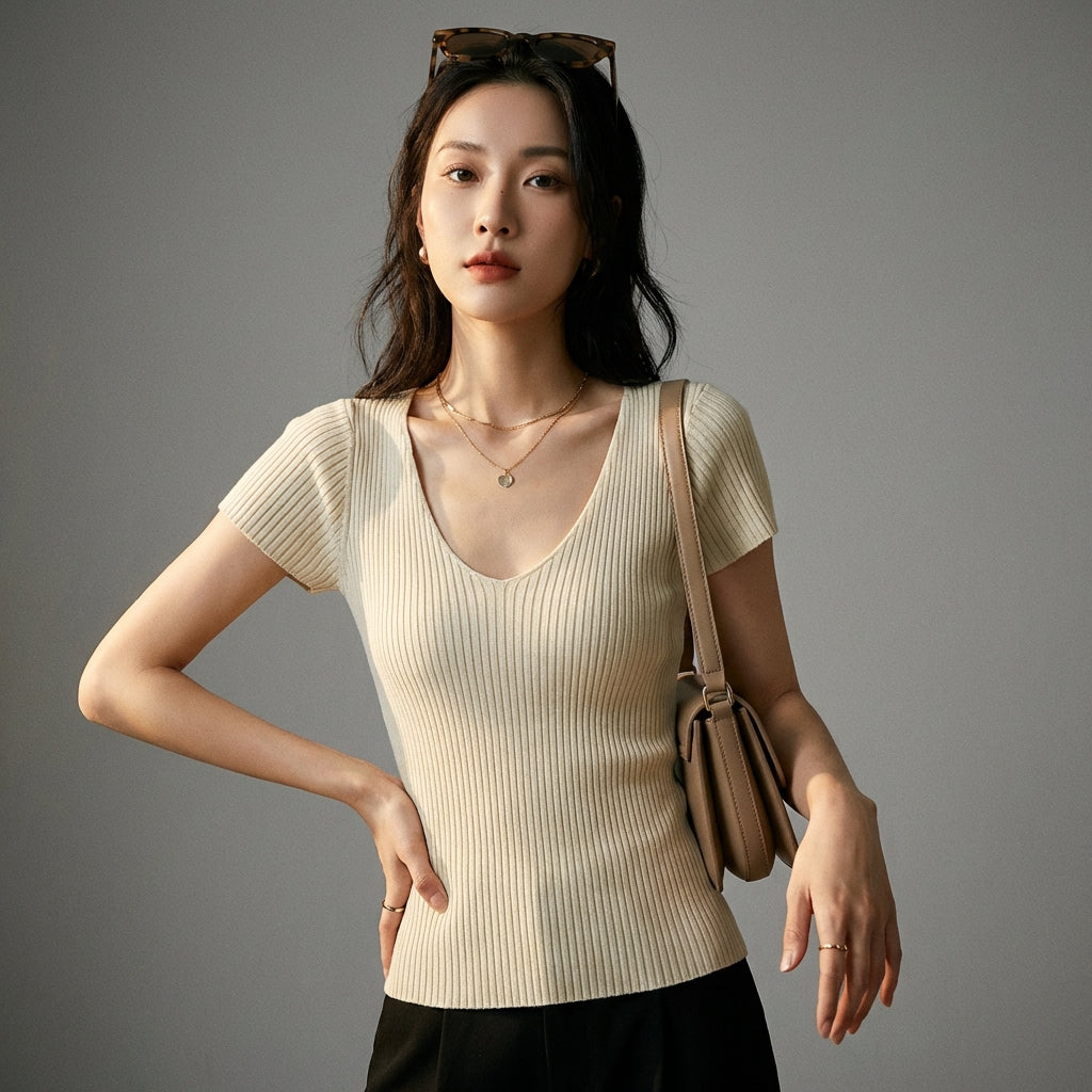 - Stil: Minimalistisch, K-Fashion, Trend. Dieses T-Shirt verkörpert die schicke Einfachheit der koreanischen Mode, perfekt für einen lässigen oder anspruchsvollen Stil.