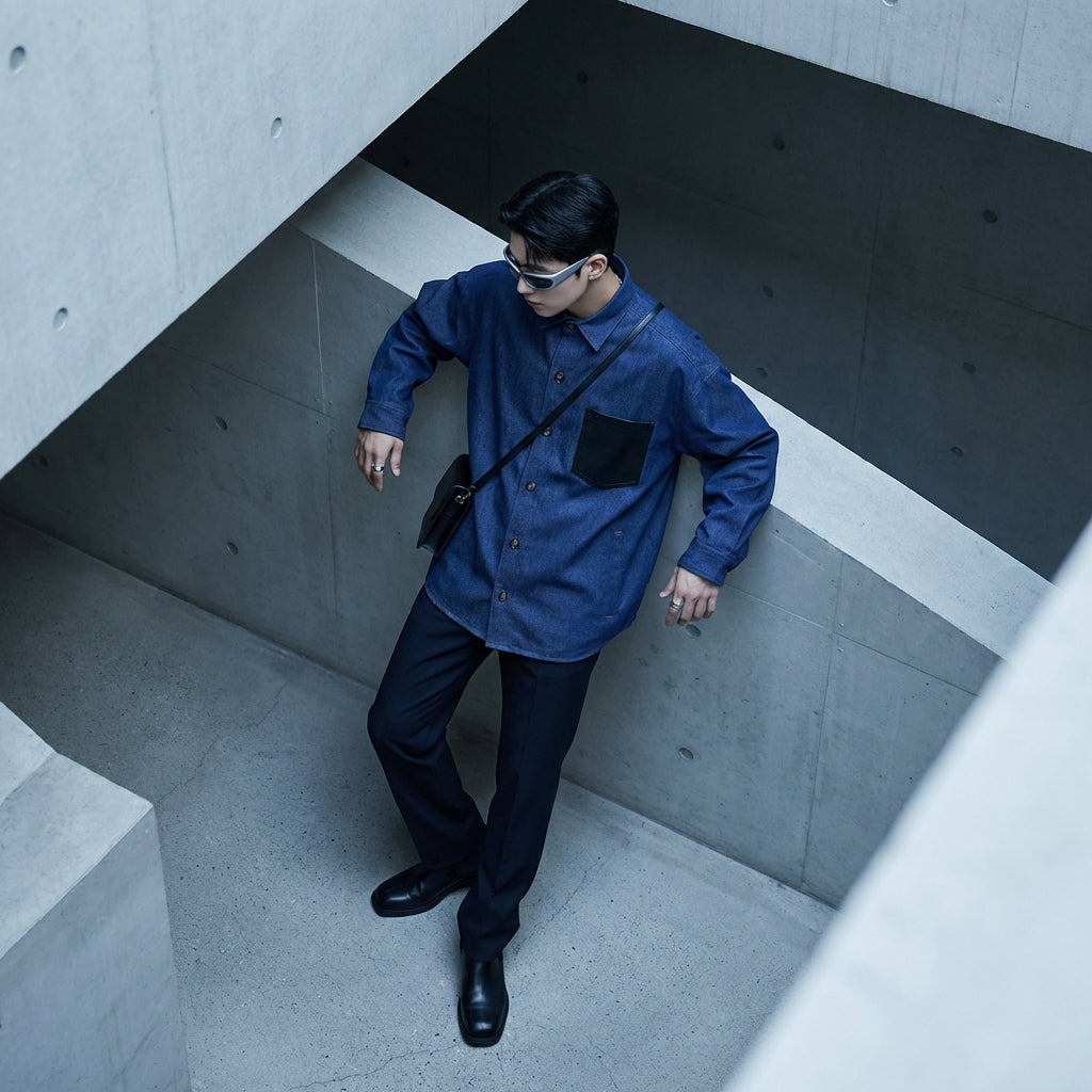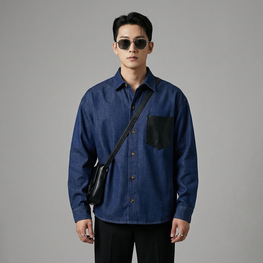Kreieren Sie einen lässigen und modernen Look mit unserem langärmeligen Jeanshemd, das praktische Taschen und einen klassischen Kragen hat. Perfekt für einen urbanen Stil und einfach im Alltag zu tragen! 👕
