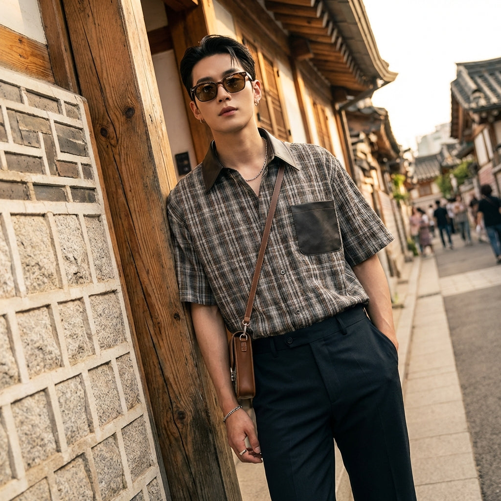 - Stil: Streetwear, K-Fashion, American Retro. Dieses Hemd kombiniert die Kühnheit von Streetwear mit amerikanischen Retro-Einflüssen und dem Sinn für Details der koreanischen Mode.
