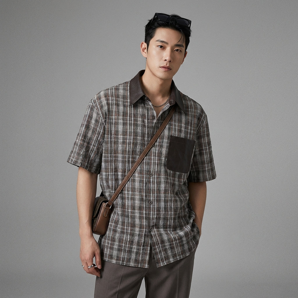 Kreieren Sie einen lässigen und stilvollen Look mit diesem kurzärmeligen Hemd, perfekt für den Sommer. Sein Karomuster und die weite Passform machen es zu einem Must-have für einen urbanen und bequemen Stil! ☀️