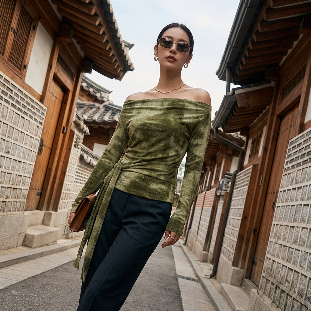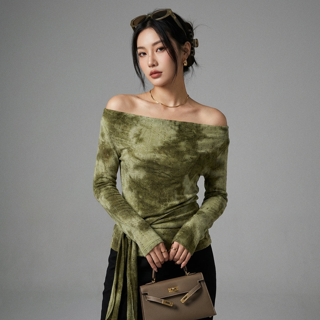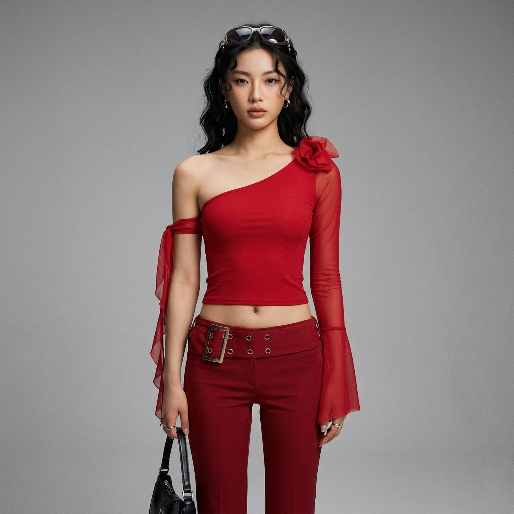Kreieren Sie einen trendigen und gewagten Look mit unserem Langarm-T-Shirt mit freier Schulter. Sein unregelmäßiger Schnitt und sein schlichtes Design machen es zu einem Must-have für einen modernen und selbstbewussten Stil! ✨