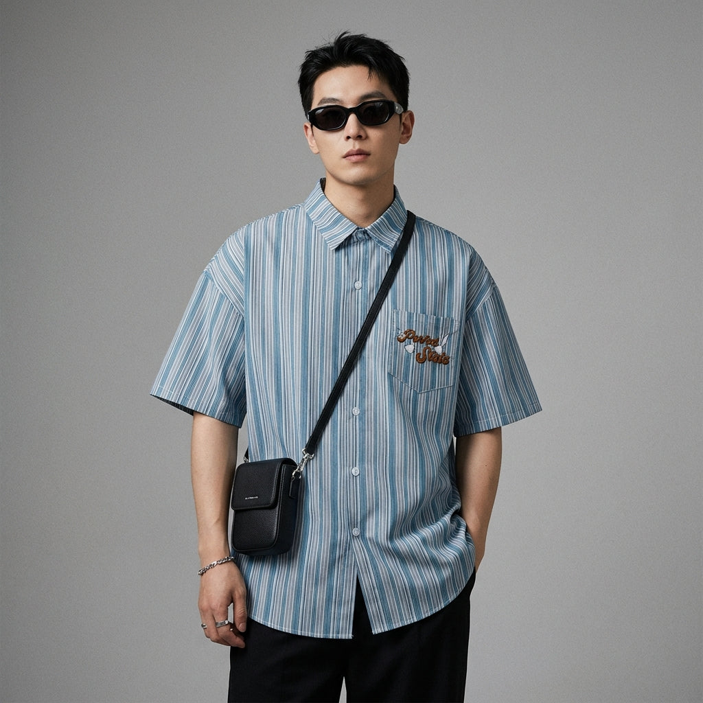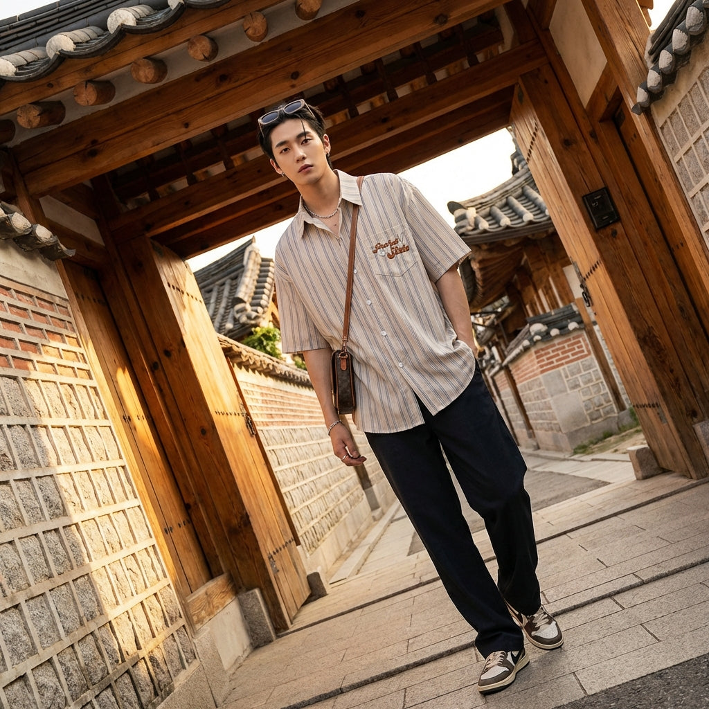- Stil: Streetwear, Casual, Retro. Inspiriert von der koreanischen Mode verkörpert dieses Hemd einen jungen und urbanen Geist.