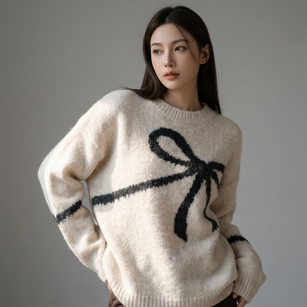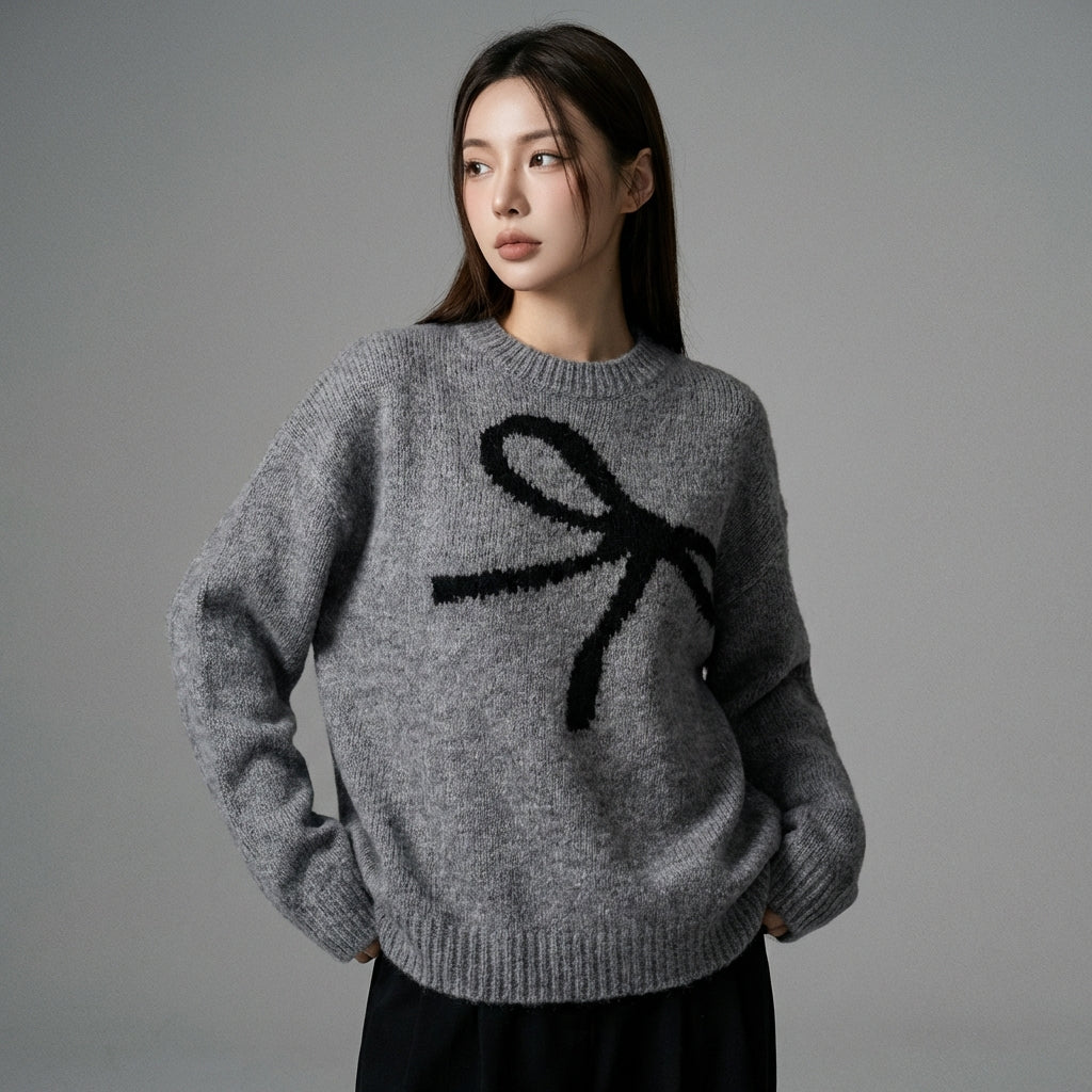 Kreieren Sie einen lässigen und eleganten Look mit unserem locker geschnittenen Rundhalspullover. Verziert mit einer zarten Schleife ist dieser weiche und bequeme Pullover perfekt für alle Gelegenheiten, von der Arbeit bis zu entspannten Abenden. Ein Must-have für einen schicken und bequemen Stil! ✨