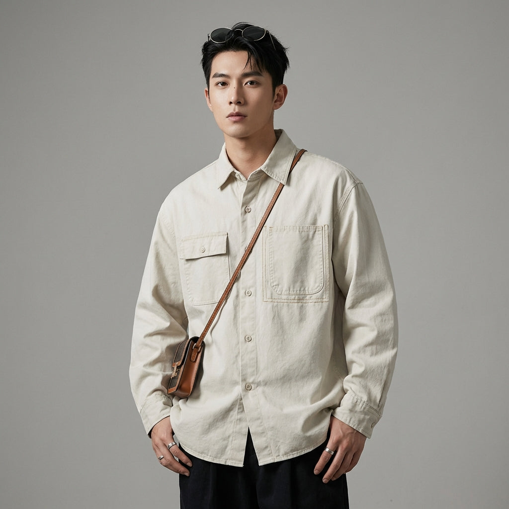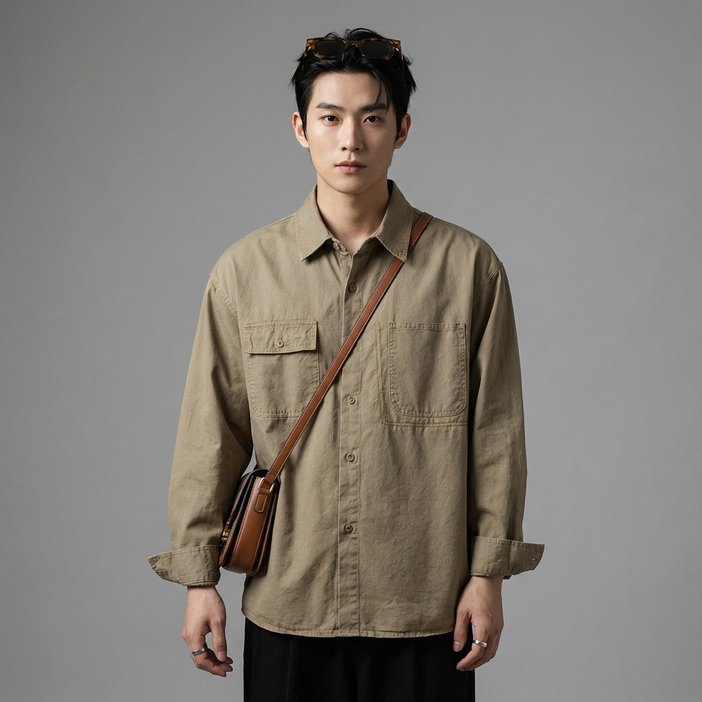 - Stil: Streetwear, Lässig, Minimalistisch. Dieses Hemd verkörpert die diskrete und moderne Eleganz der koreanischen Freizeitmode.