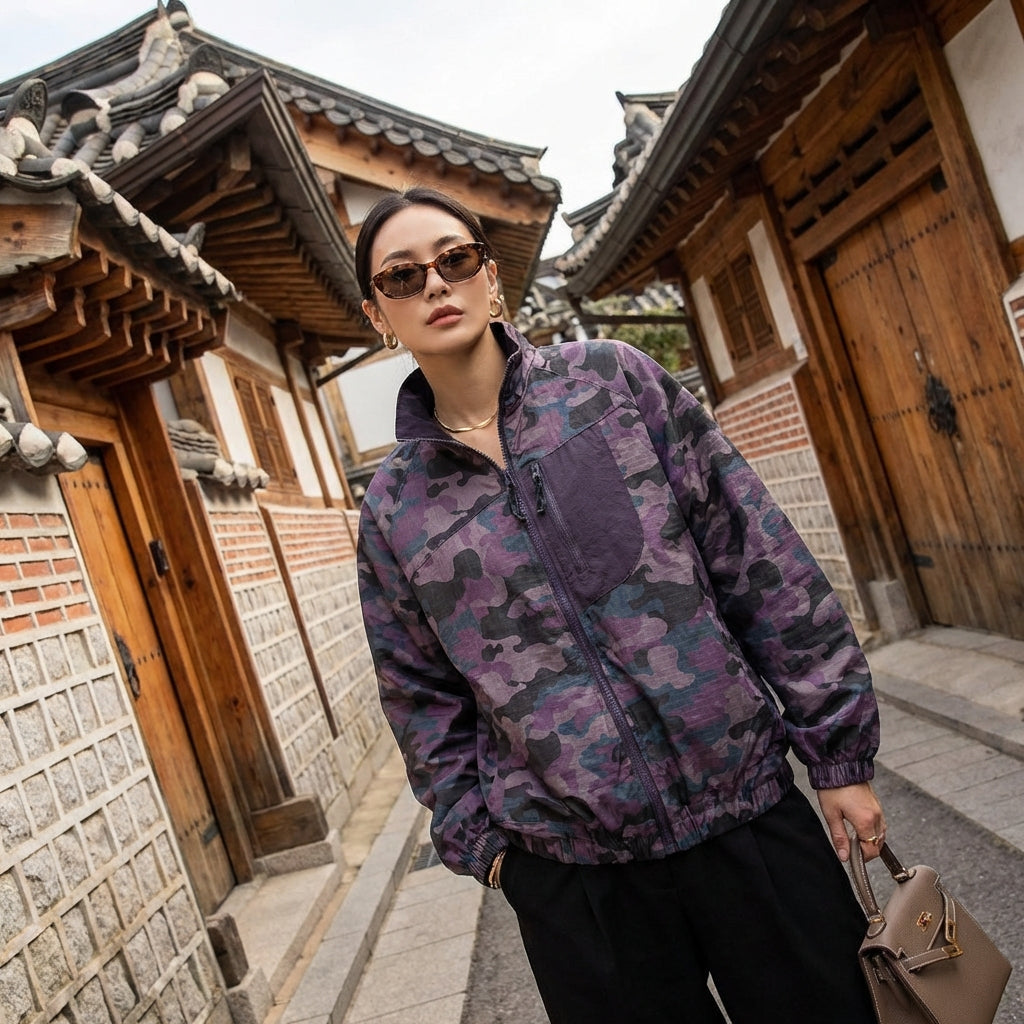 Mit ihren zahlreichen praktischen Taschen und dem robusten Reißverschluss ist diese Camouflage-Jacke das Herzstück für einen Look, der sowohl funktional als auch stylisch ist. Zeigen Sie Ihre Persönlichkeit mit Koreanxwear!