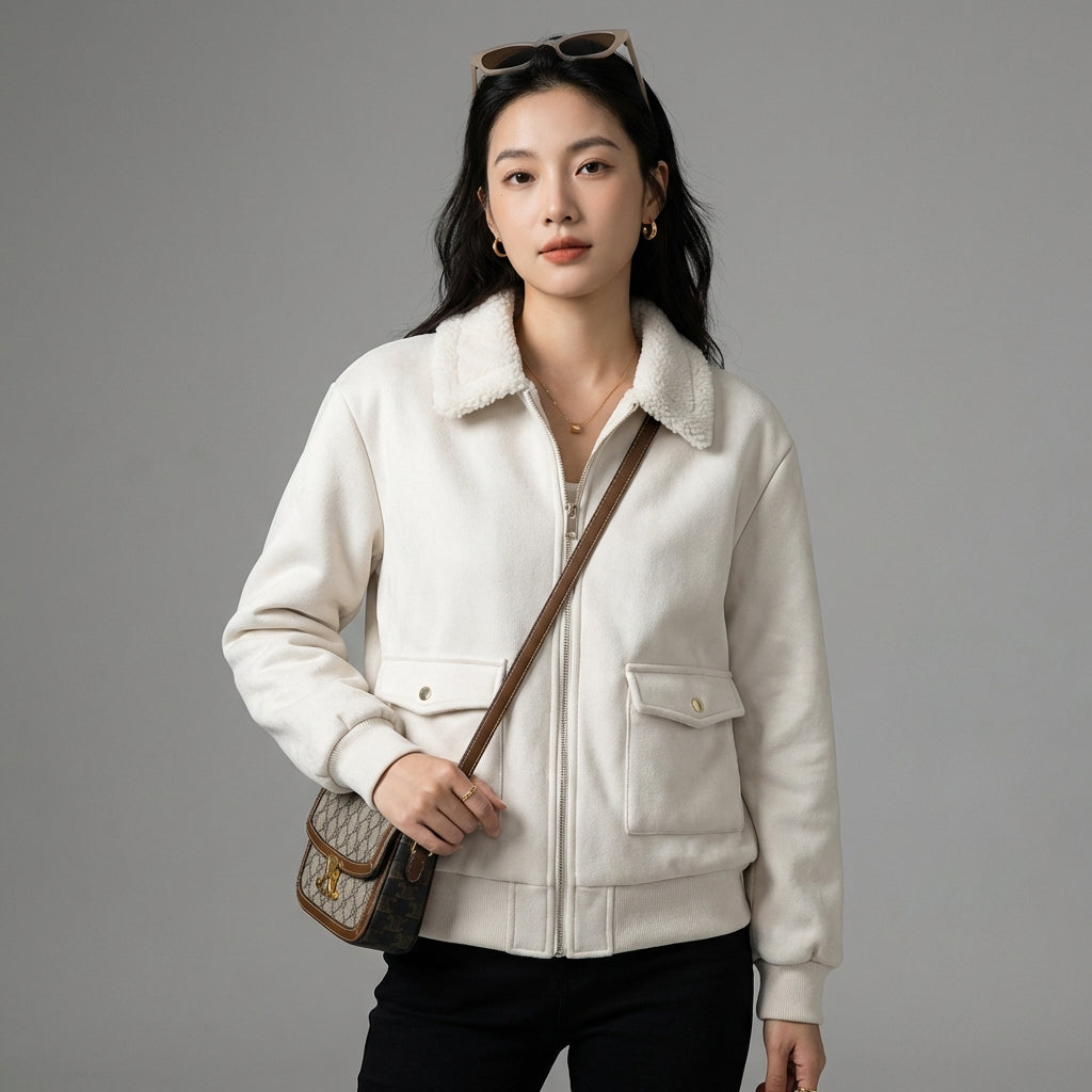 - Typ: Jacke, Langarm. Ein klassischer Schnitt mit Hemdkragen und Reißverschluss für einen zeitlosen Look.