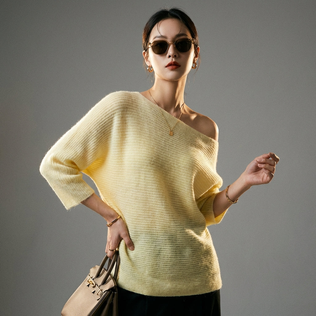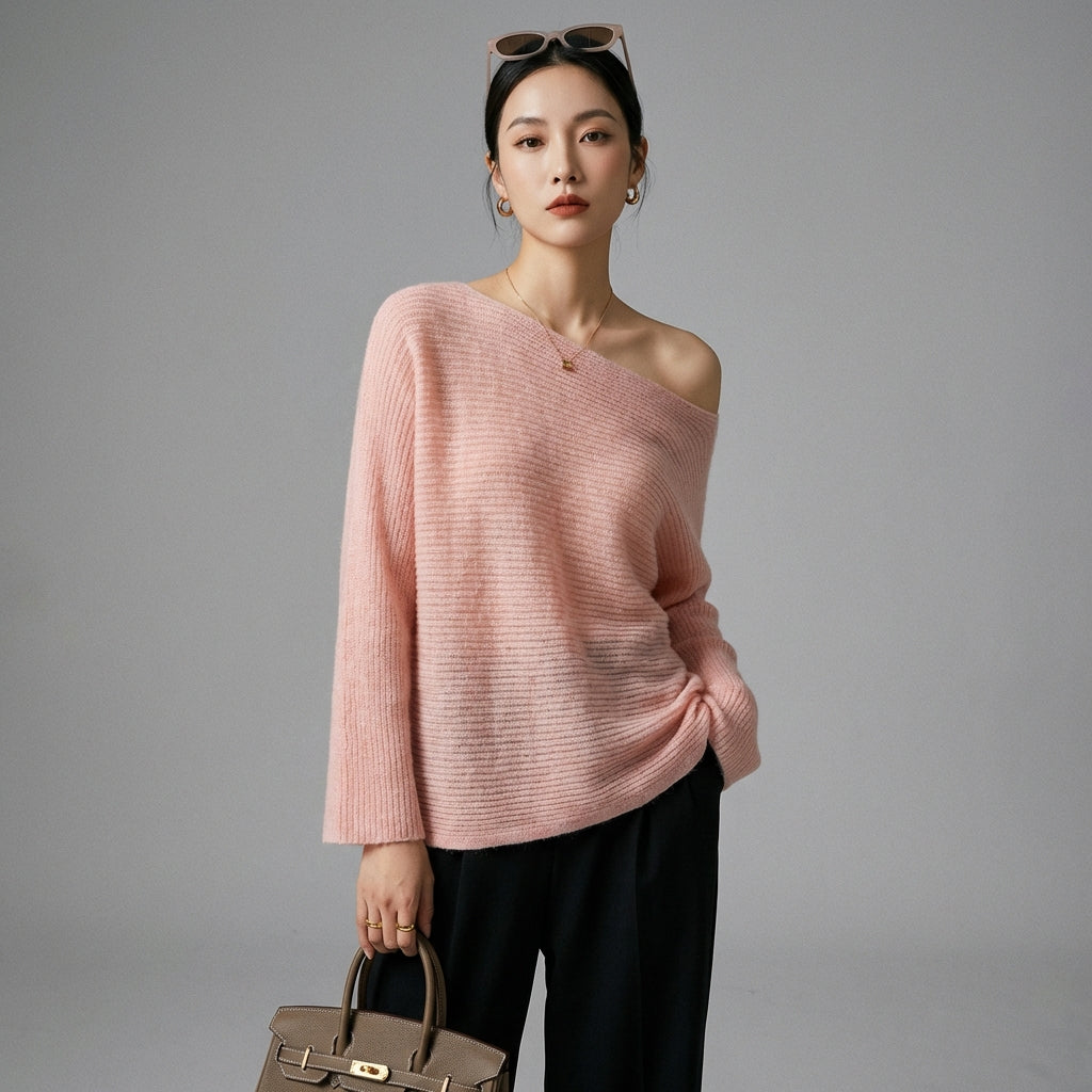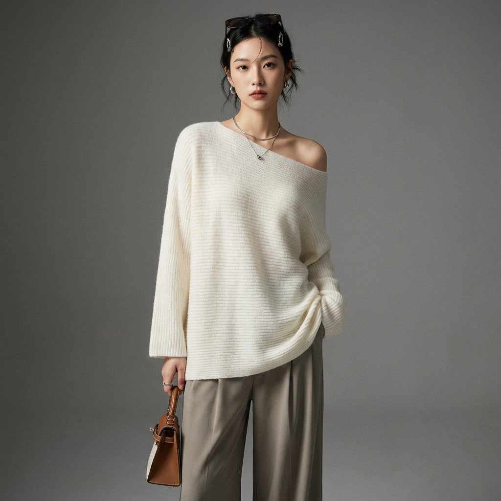 Kreieren Sie einen eleganten und lässigen Look mit unserem Off-Shoulder-Top aus Feinstrick. Sein lockerer Schnitt und zeitloser Stil machen es zu einem Must-have für jede Garderobe, perfekt für einen selbstbewussten und bequemen Stil! ✨