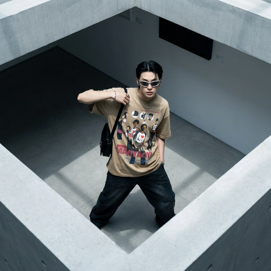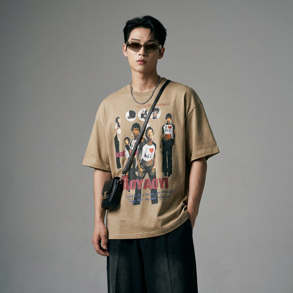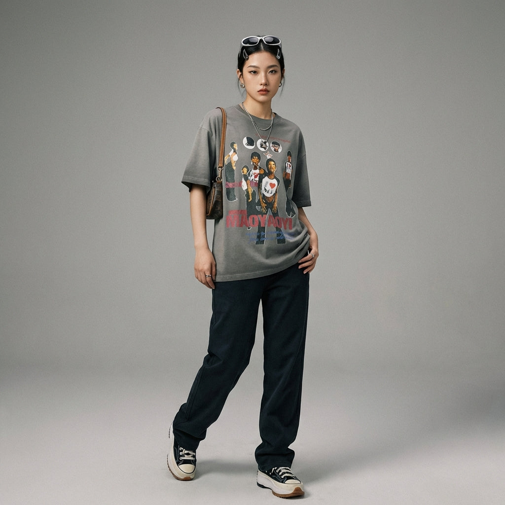 - Stil: Streetwear, K-Fashion, Lässig. Dieses T-Shirt verkörpert den Geist der koreanischen urbanen Mode mit einem lässigen und modernen Touch.
