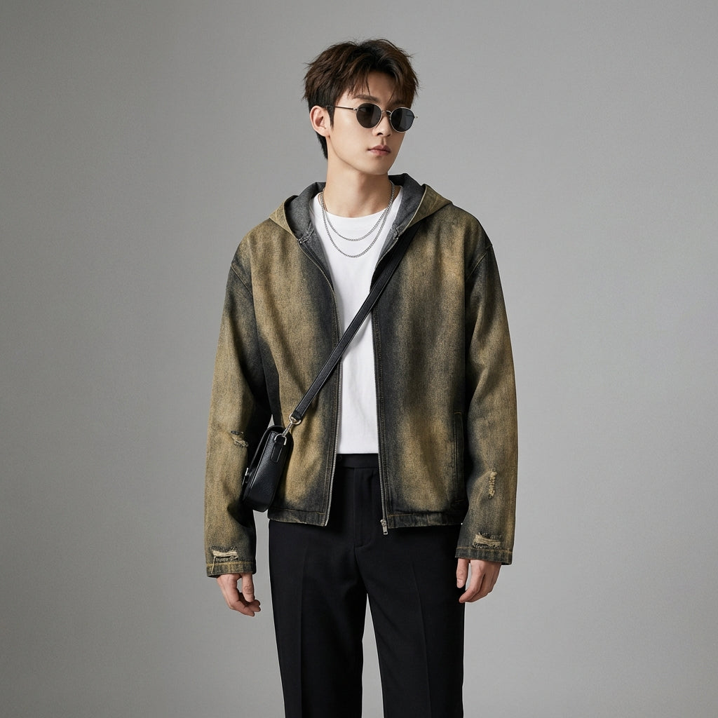 - Stil: Streetwear, American Retro, Trend. Diese Jacke verkörpert den rebellischen Geist der Streetwear mit einem Retro-Touch, perfekt für Liebhaber der K-Fashion.