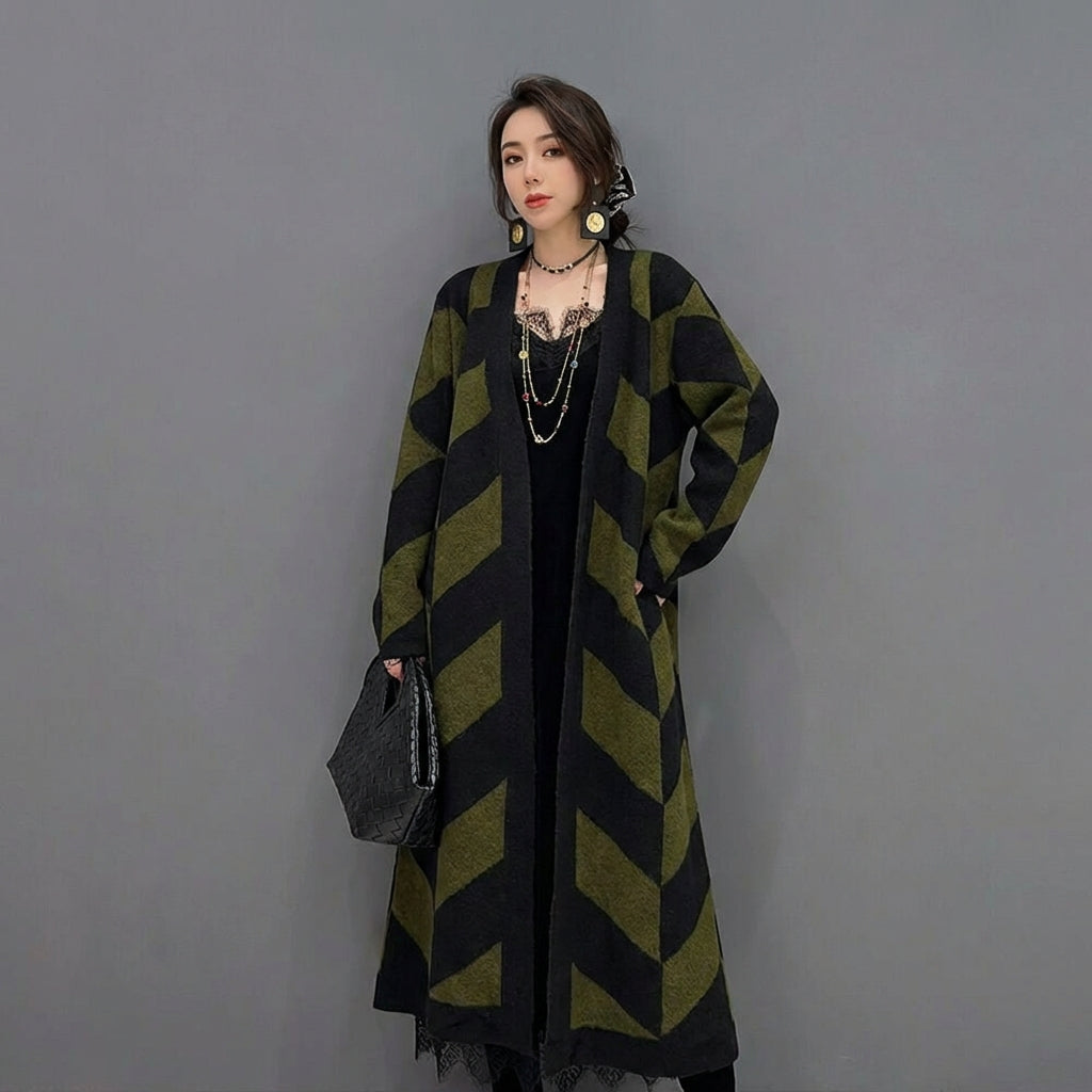 Kreieren Sie einen lässigen und schicken Look mit unserem gestreiften Strickcardigan. Sein lockerer Schnitt und sein vielseitiges Design machen ihn zum perfekten Kleidungsstück zum Überziehen und verleihen jedem Outfit einen Hauch von Stil! ✨