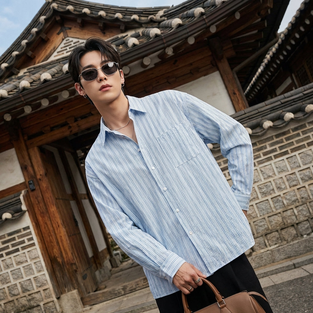 - Stil: Streetwear, Lässig, K-Fashion. Dieses Hemd verkörpert den urbanen und lässigen Stil, ideal für einen modernen und trendigen Look.