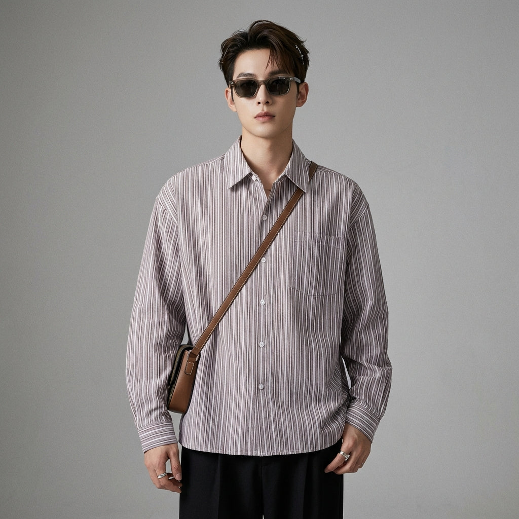 Kreieren Sie einen lässigen und trendigen Look mit unserem gestreiften Oversize-Hemd, perfekt für einen entspannten Streetwear-Stil. Sein lockerer Schnitt und die Streifenmuster machen es zu einem Must-have für alle Jahreszeiten! 👕