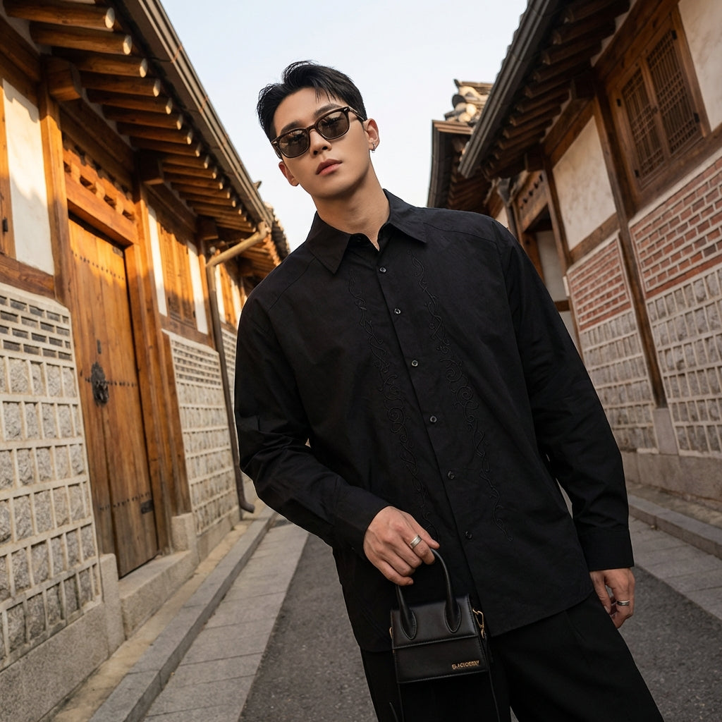 - Stil: Streetwear, Lässig, K-Fashion. Dieses Hemd verkörpert die lässige und stilvolle Ästhetik der koreanischen Mode, perfekt für einen urbanen und trendigen Look.