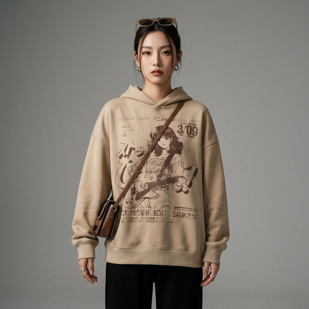 - Stil: Streetwear, Lässig, K-Fashion. Dieser Hoodie verkörpert koreanische urbane Mode mit einem Vintage-Touch, perfekt für einen gewagten und bequemen Look.