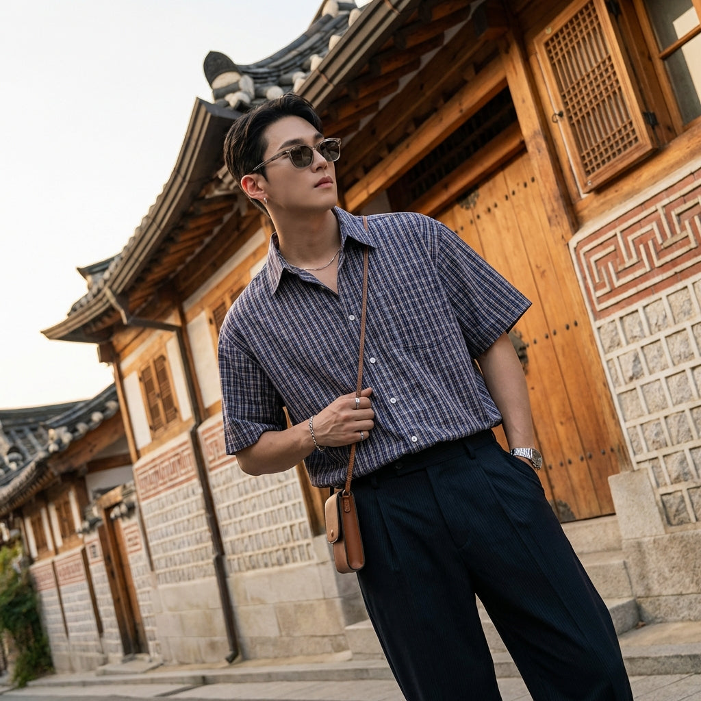 - Stil: Streetwear, K-Fashion, Casual. Dieses Hemd verkörpert die lässige und stylische Ästhetik der koreanischen Mode und des modernen Streetwear.