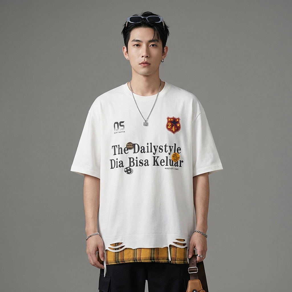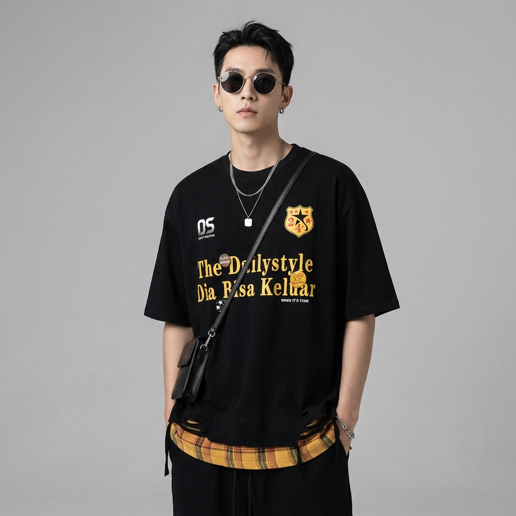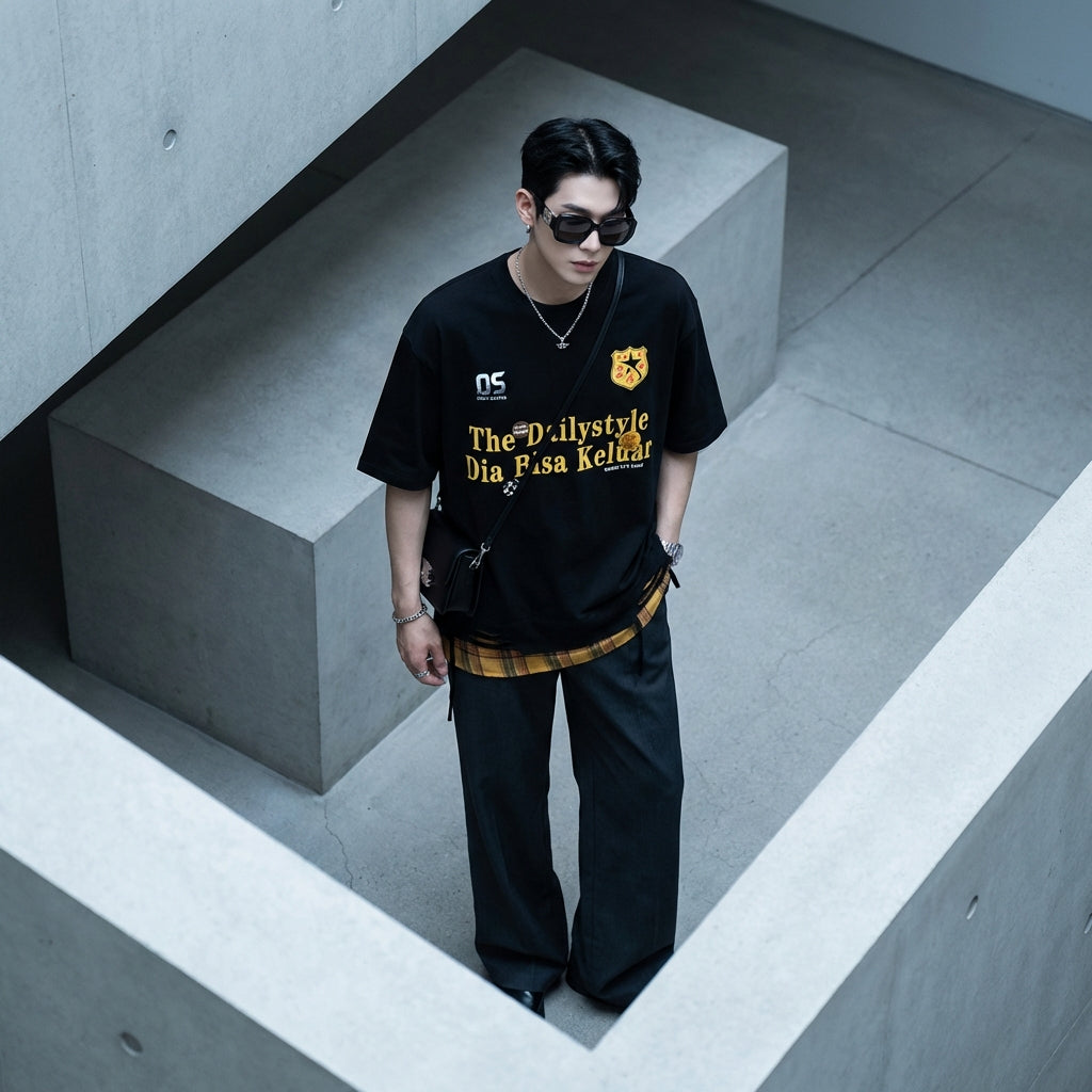 - Stil: Streetwear, K-Fashion, Urban, Trend. Dieses T-Shirt verkörpert den Geist der zeitgenössischen koreanischen Mode mit einem kühnen Touch.