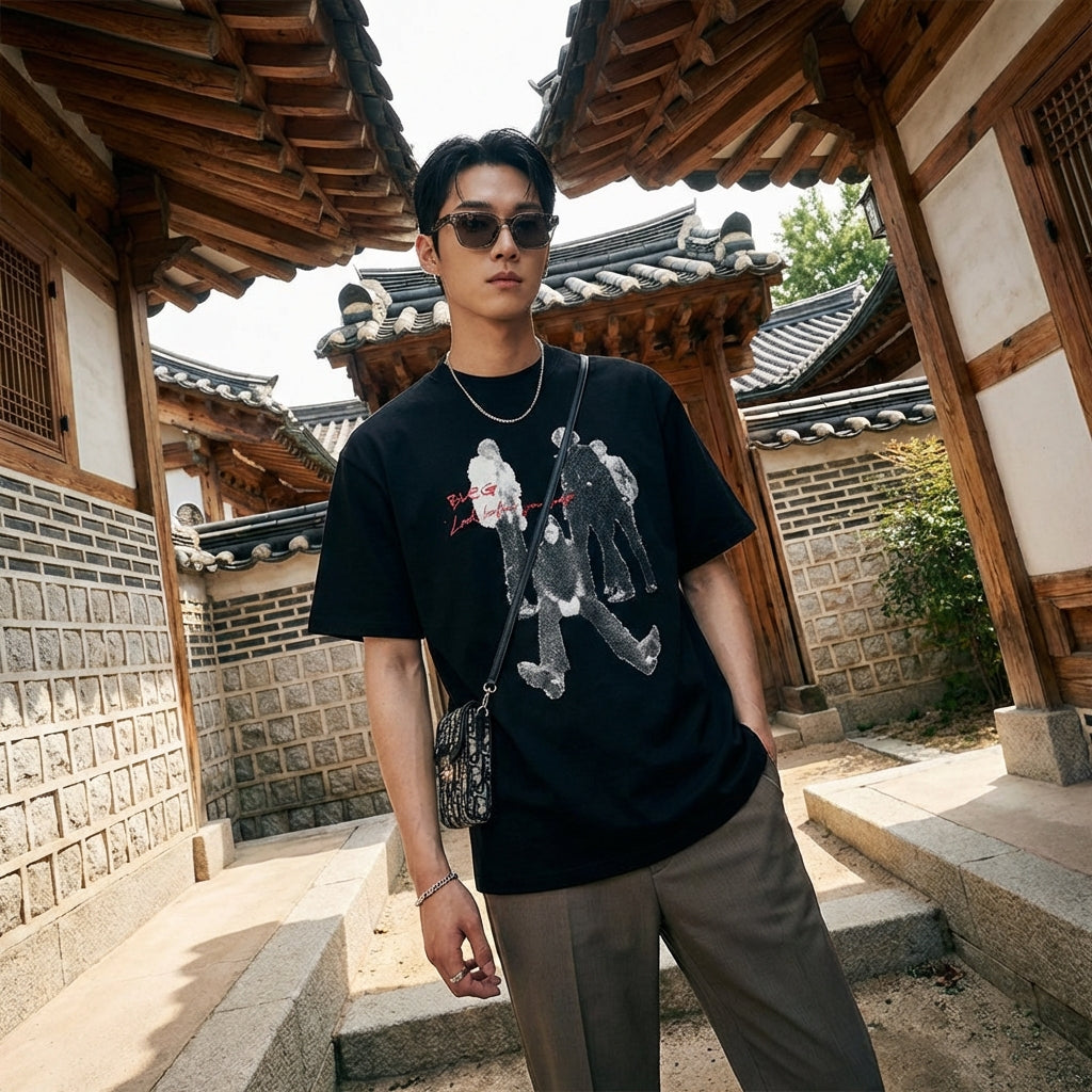 - Stil: Streetwear, Trendig, Urban. Inspiriert von der koreanischen Mode ist dieses T-Shirt perfekt für einen lässigen und angesagten Look, der die neuesten Trends widerspiegelt.
