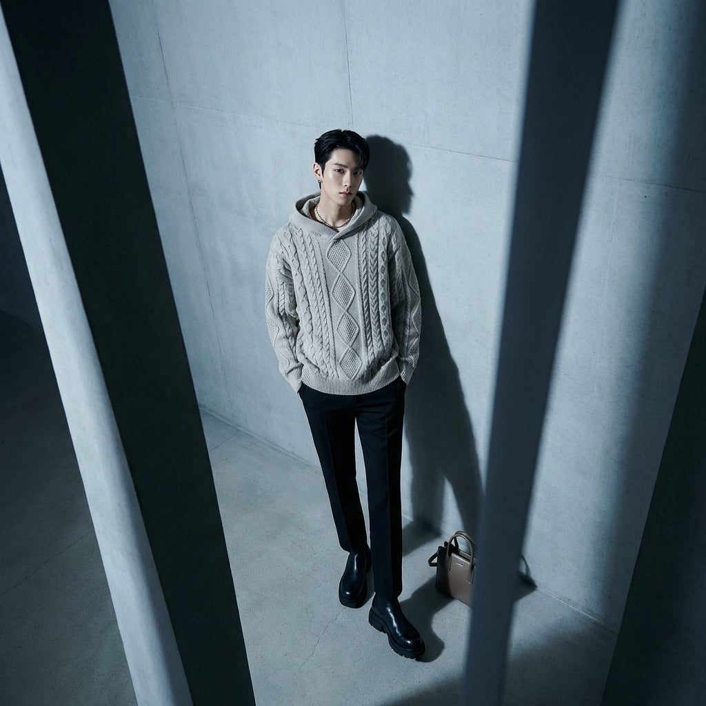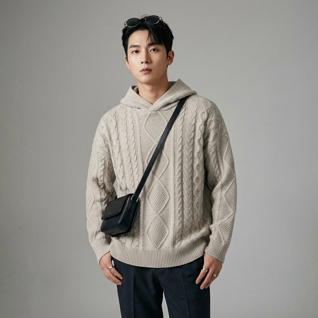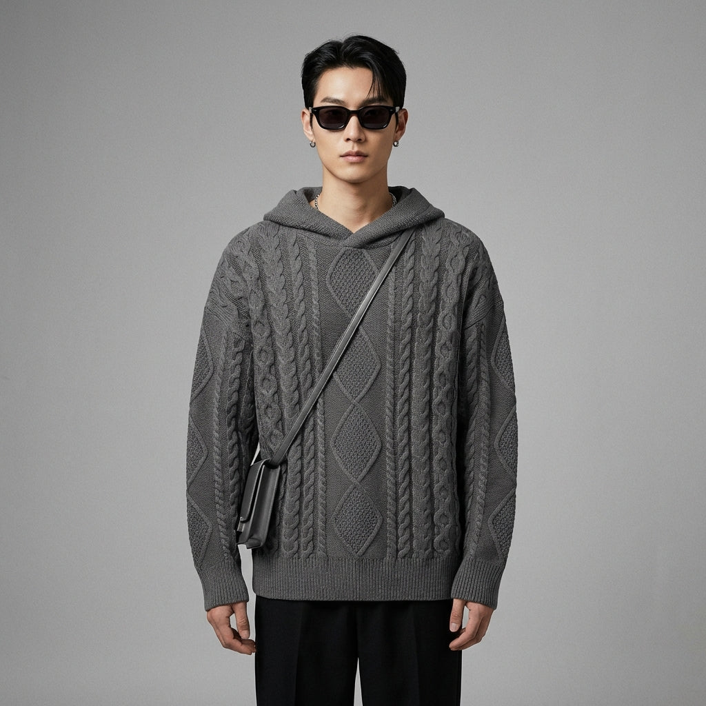 Erleben Sie Komfort und Stil mit unserem gestrickten Kapuzenpullover, einem Must-have für Ihre entspannten Tage. Sein Zopfmuster und die weite Passform sorgen für eine moderne und entspannte Silhouette. Ideal für einen trendigen und gemütlichen Look! ✨
