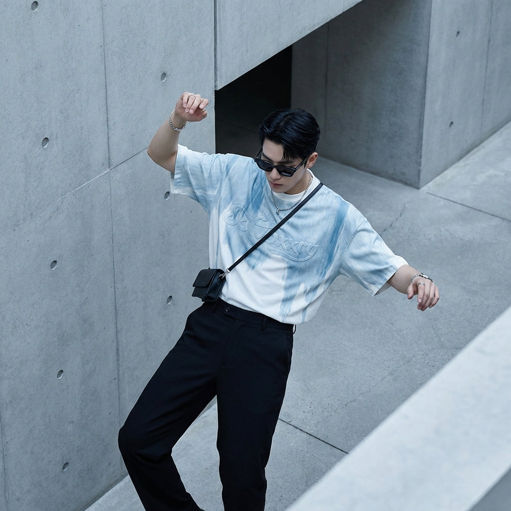 - Stil: Streetwear, Trendig, Urban. Dieses T-Shirt verkörpert den Geist der koreanischen Freizeitmode mit einem Hauch von Originalität.