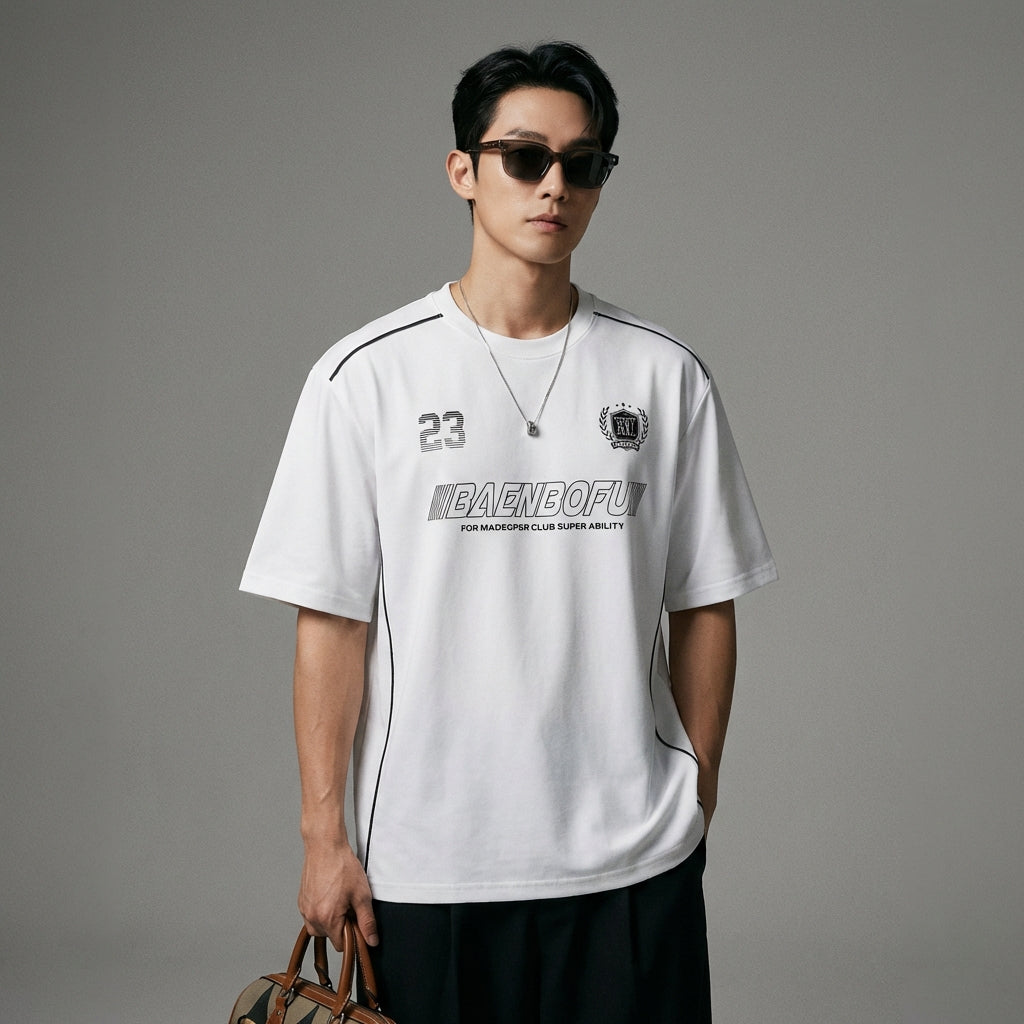 - Stil: Streetwear, Lässig, K-Fashion. Dieses T-Shirt verkörpert den Geist der koreanischen Urban Fashion, mit einem weiten Schnitt und einem grafischen Design.